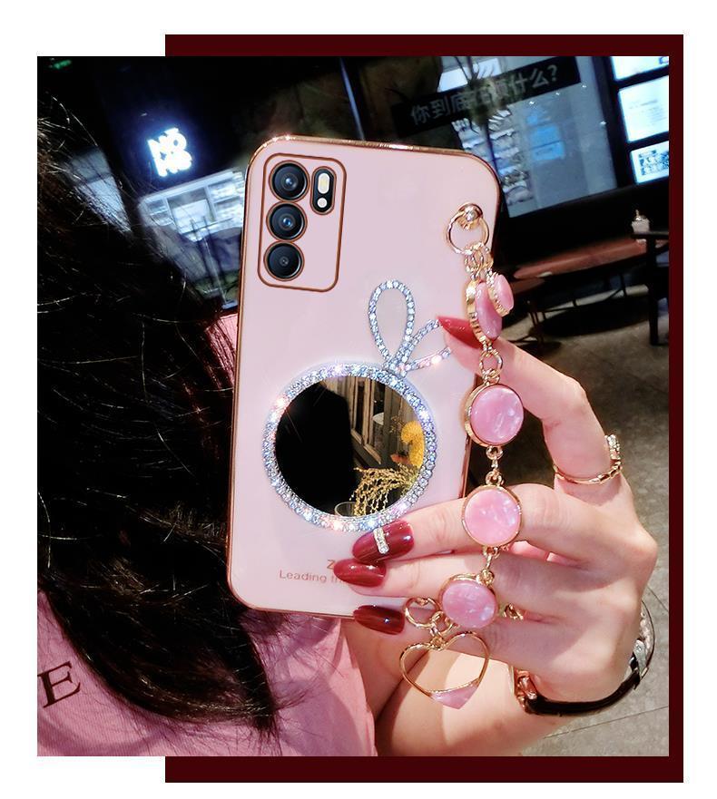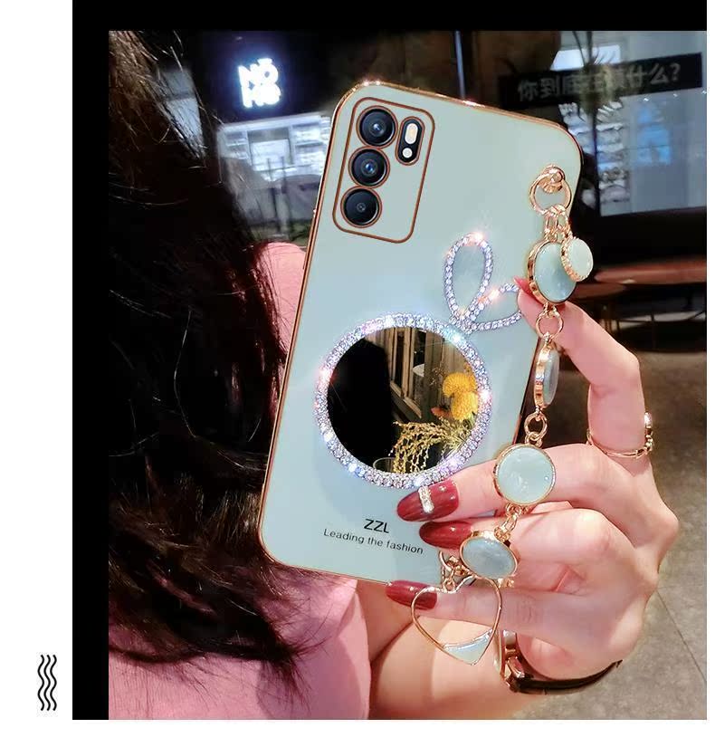 opporeno6手機殼reno6pro保護套兔子0PP0reon6por防摔外殼opop女PEQM00帶鉆PEPM00鏡子硅膠opopreno65g鏈條女
