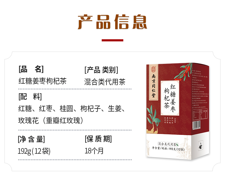 南京同仁堂紅糖姜棗枸杞茶桂圓玫瑰姜湯姨媽氣血體宮寒獨立小包裝