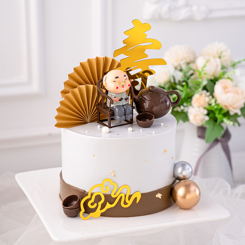 祝壽烘焙蛋糕喝茶老爺爺擺件歲歲