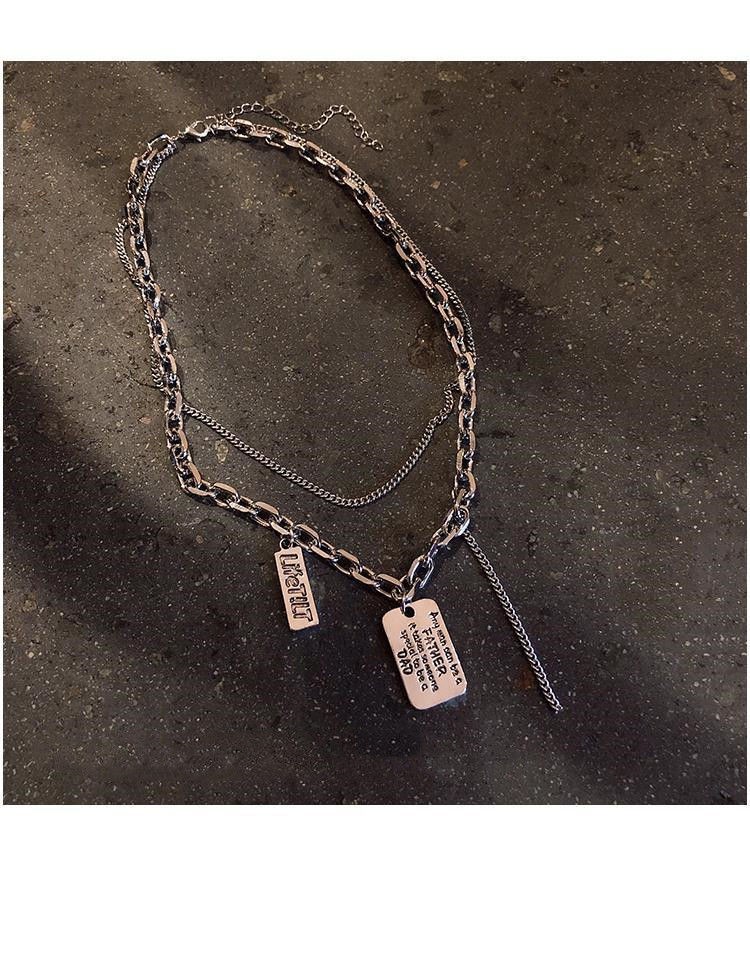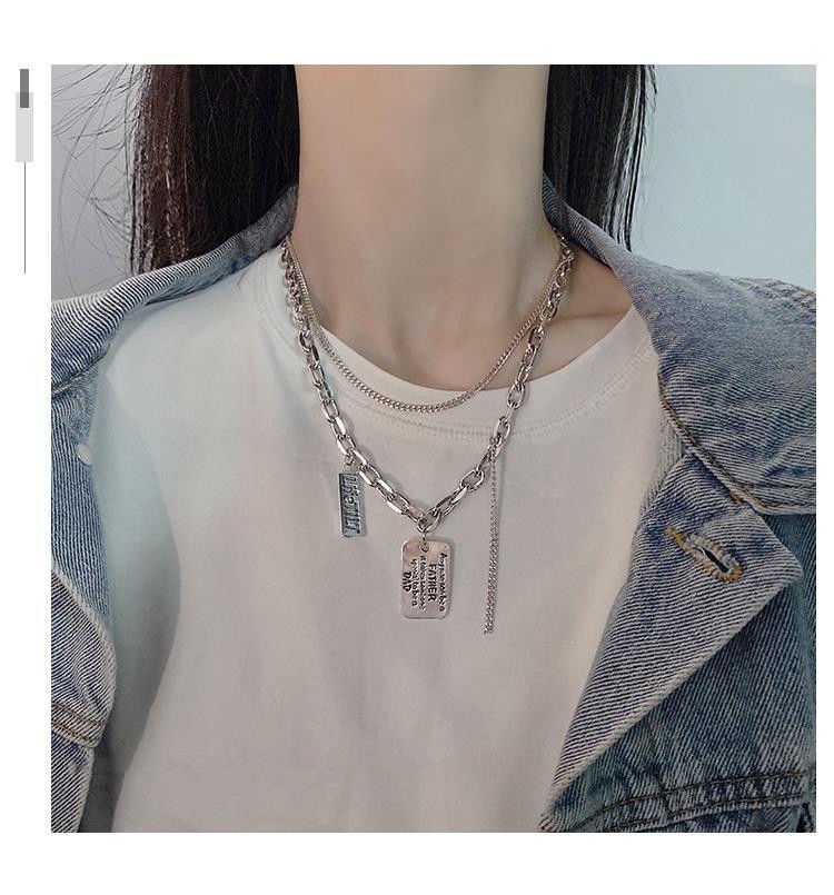 人像ins冷淡風雙層女嘻哈鈦鋼項鏈
