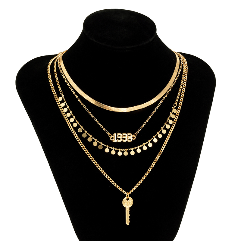 4件套扁蛇鏈項鏈女潮網紅ins氣質小眾設計1998鑰匙吊墜鎖骨鏈飾品