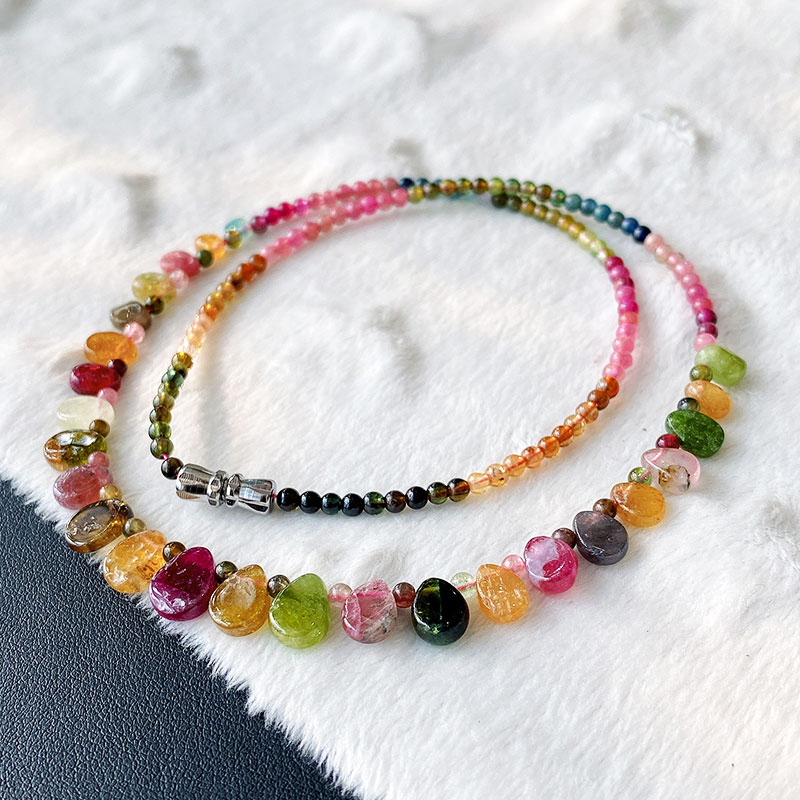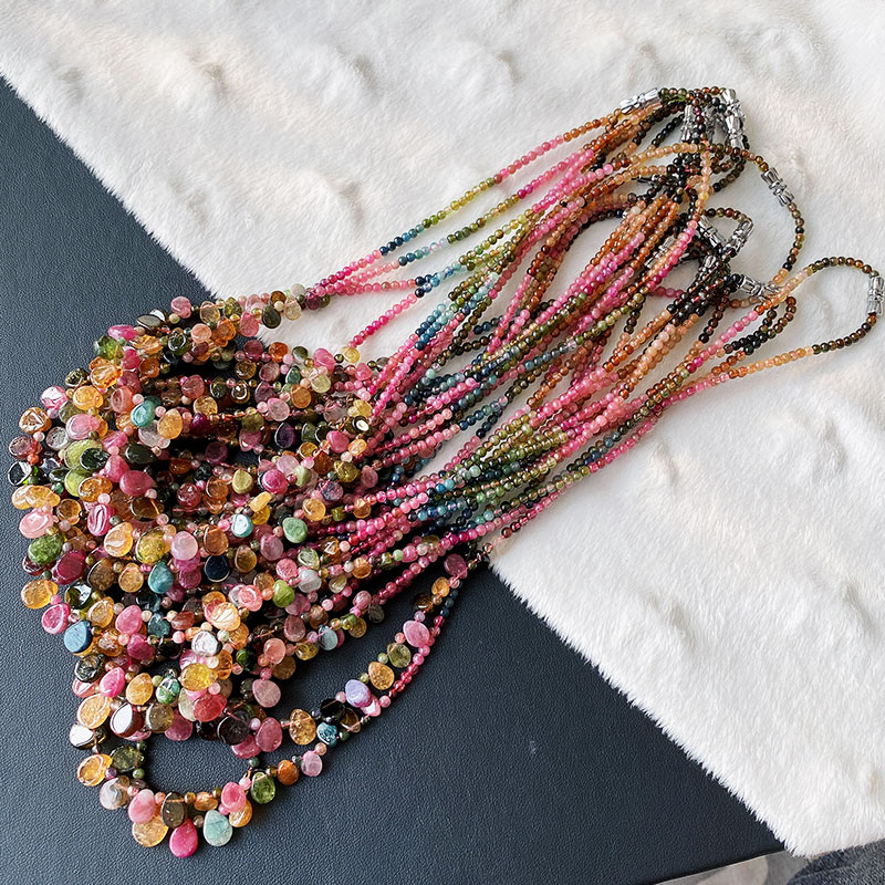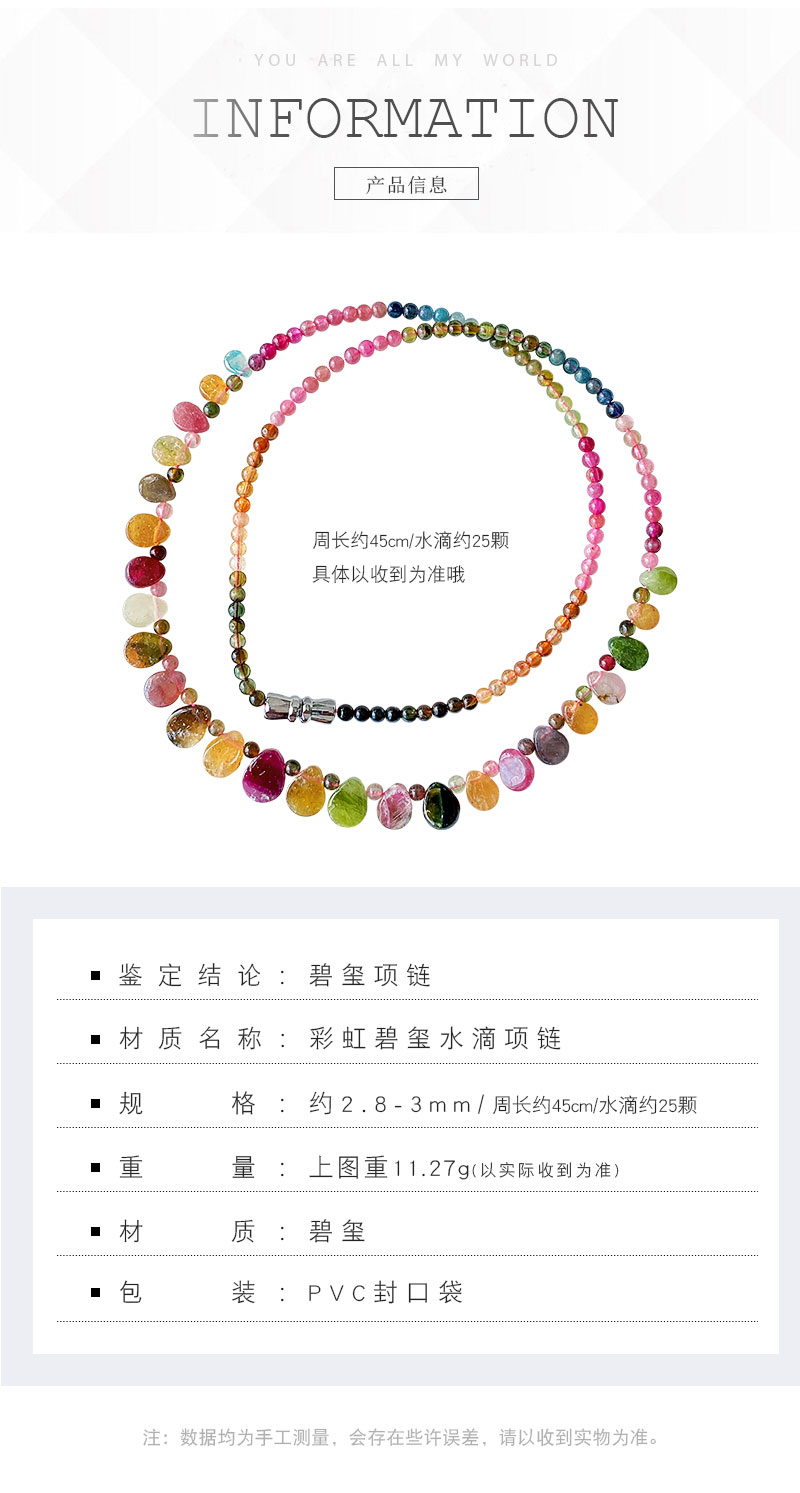 彩虹碧璽水滴項鏈公主鏈通透濃艷女糖果色天然水晶鎖骨鏈時尚飾品
