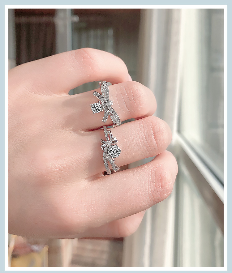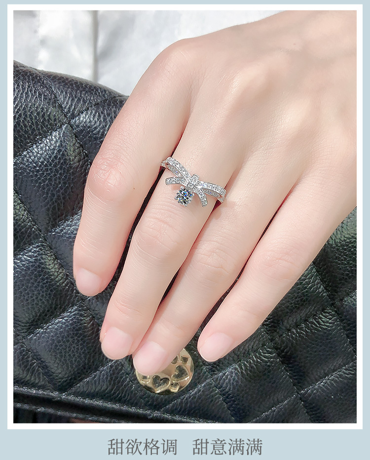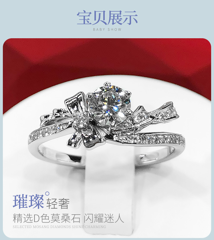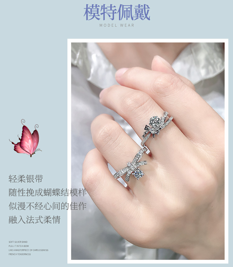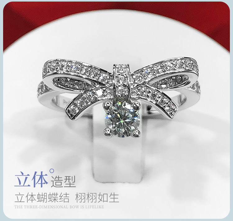 輕奢18K金50分蝴蝶結鉆戒女士925銀飾仿真鉆石食指結婚戒指訂鉑金