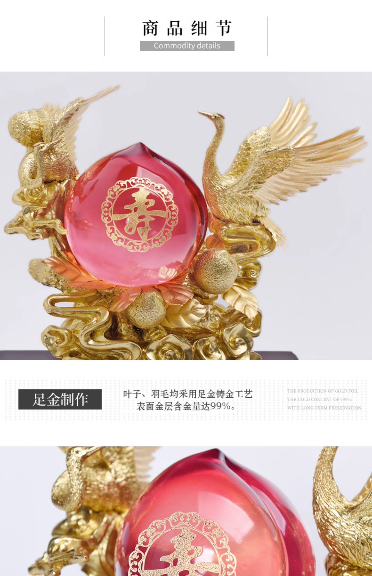 足金金箔松鶴壽桃90壽禮老人生日禮物長輩60八十大壽 diy祝壽禮品