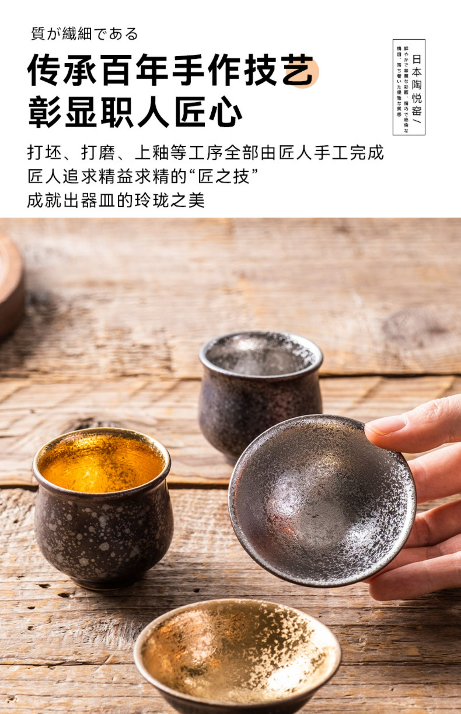日本進口有田燒陶瓷手作金銀彩日式小茶杯子復古清酒杯單杯品茗杯