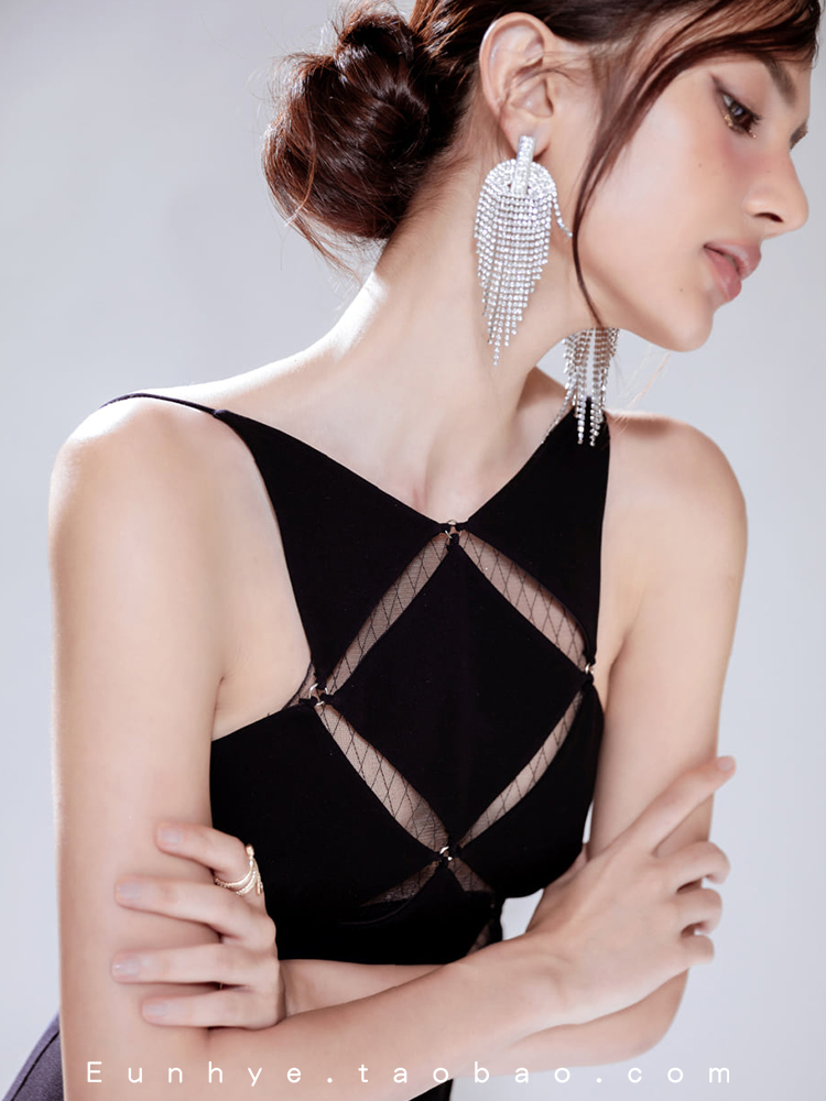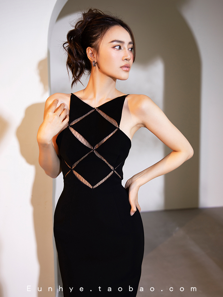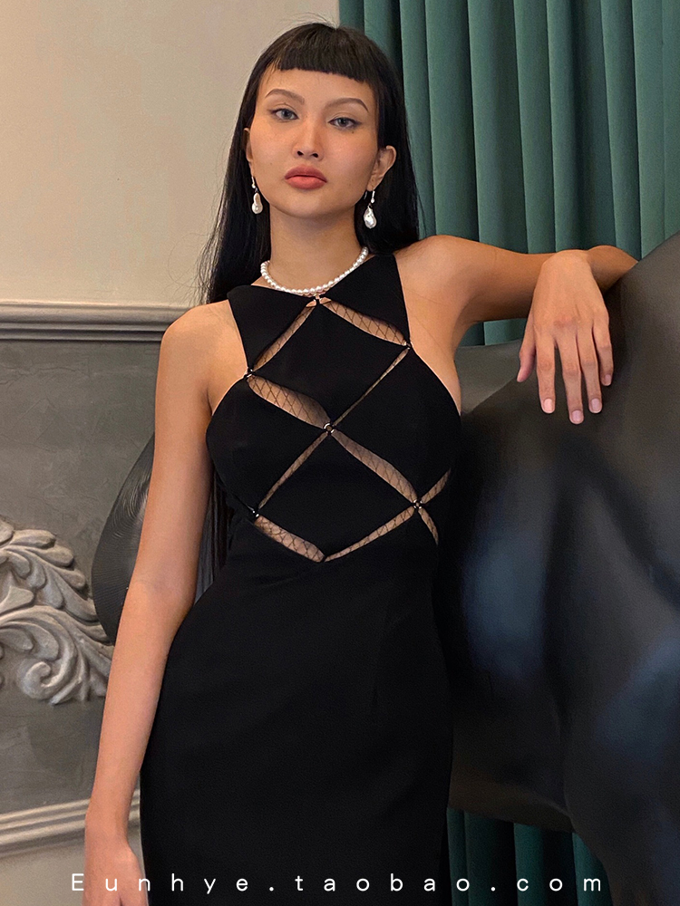 品牌授權越南小眾ELPIS 2021冬季新款無袖女神超顯瘦性感中長裙
