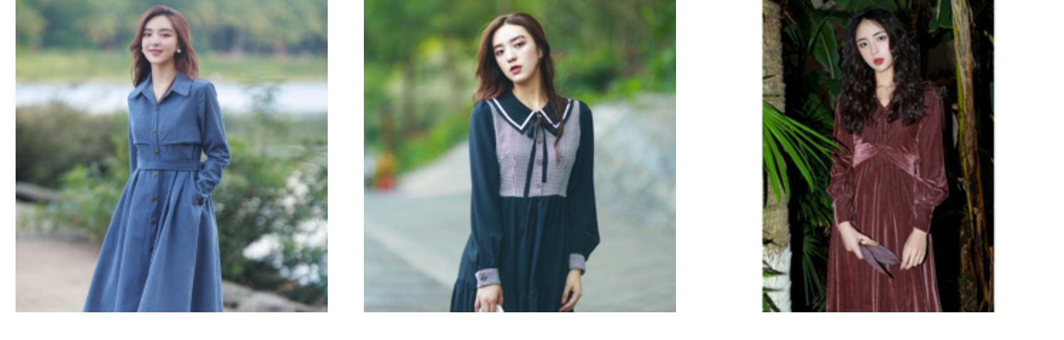 春秋季娃娃領收腰長袖金絲絨連衣裙