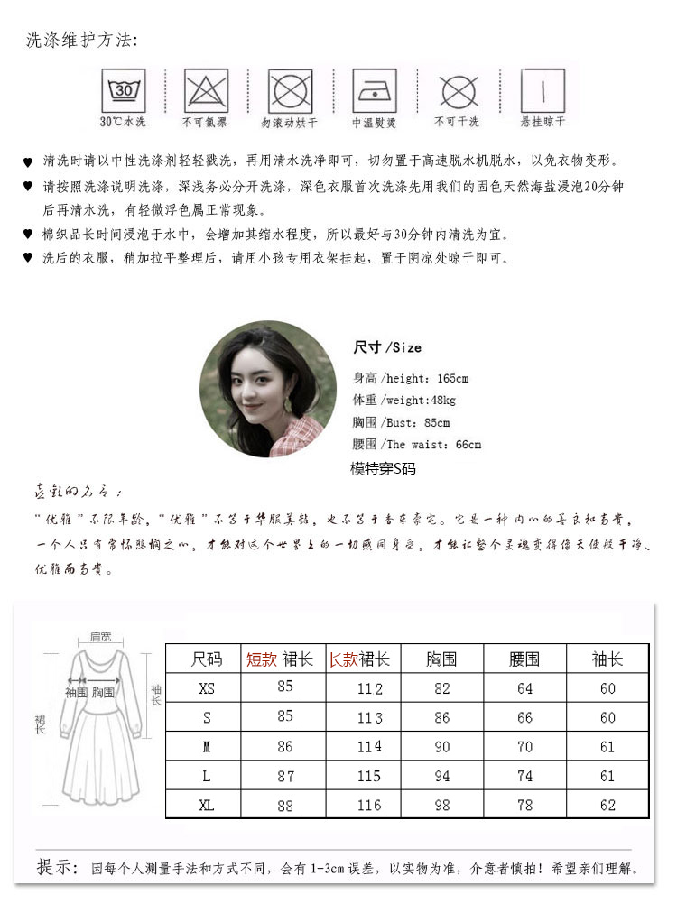juju法式浪漫格子小清新尖領連衣裙