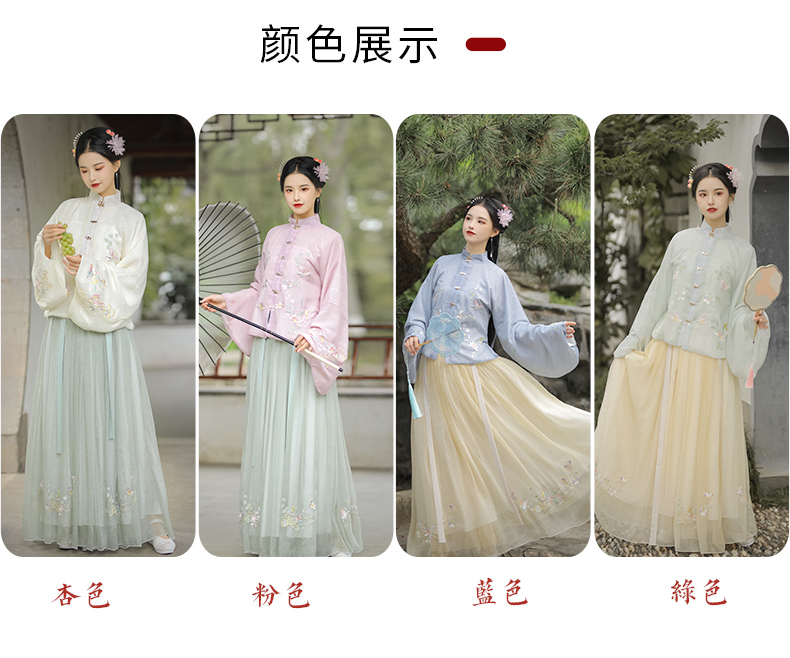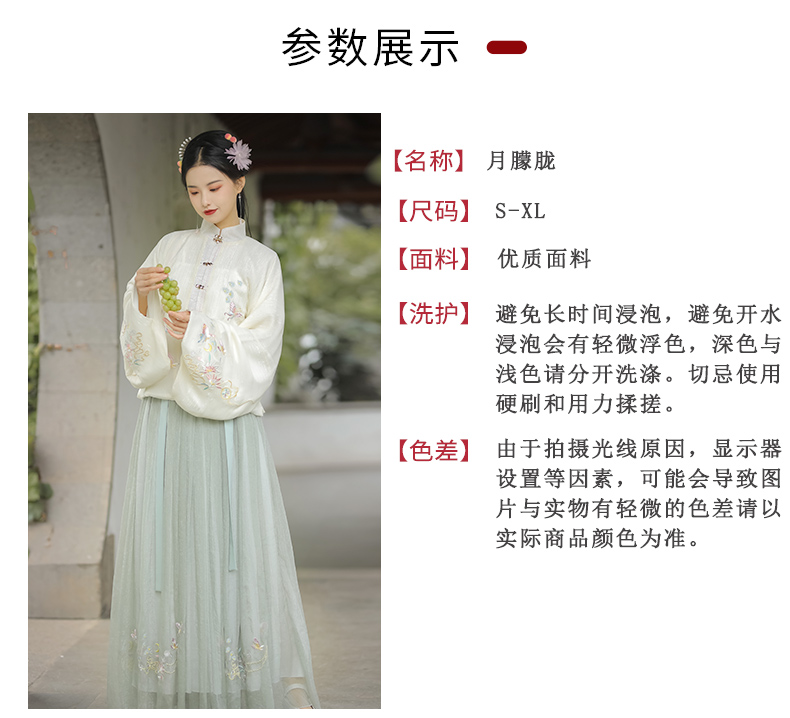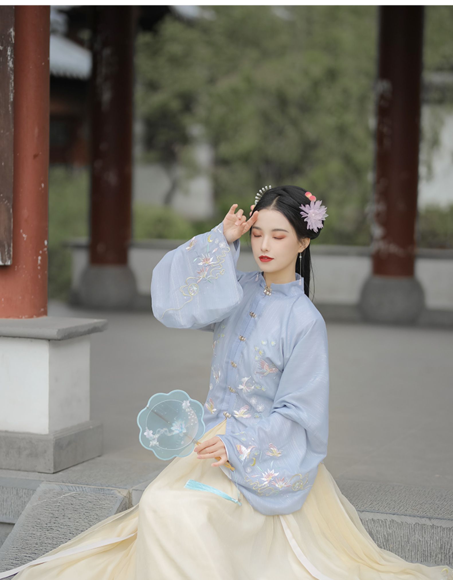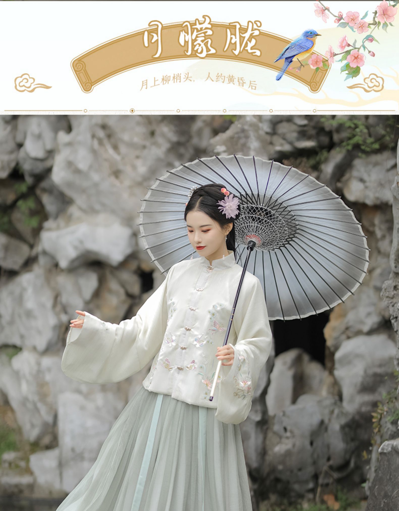 明制漢服女月朦朧立領對襟繡花仙氣百褶裙原創正品中國風古裝古風