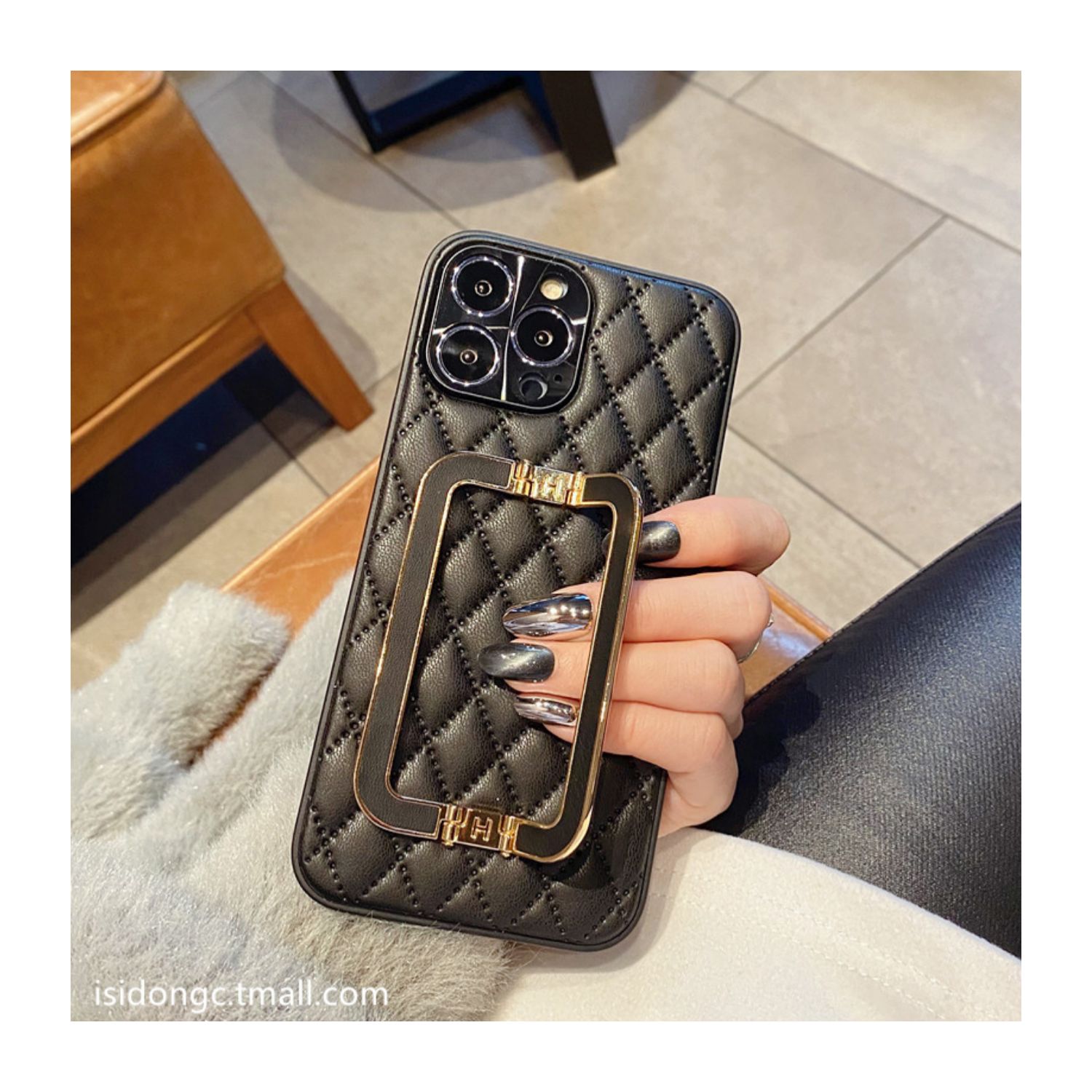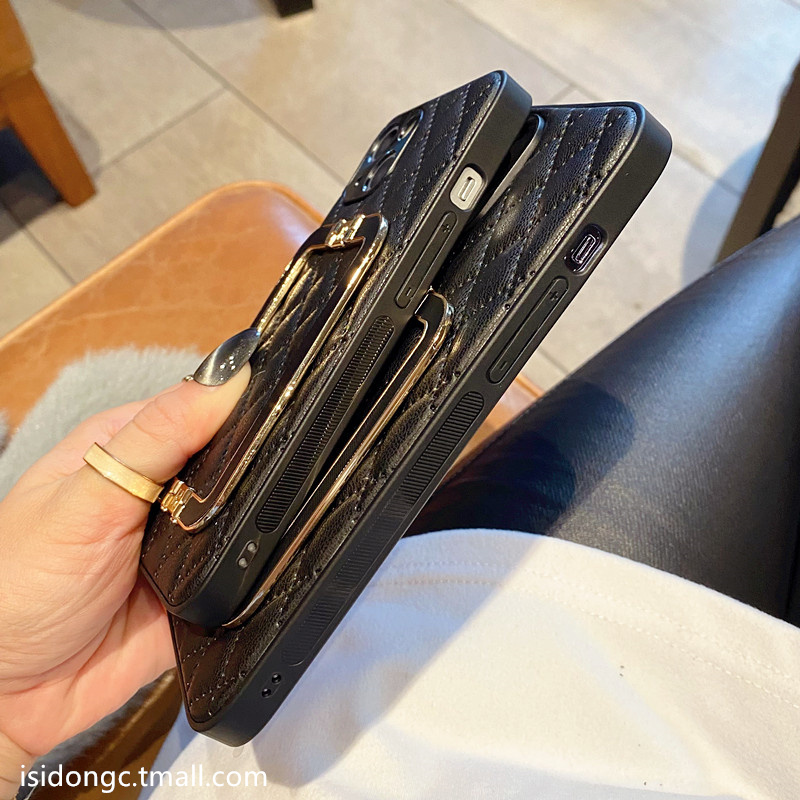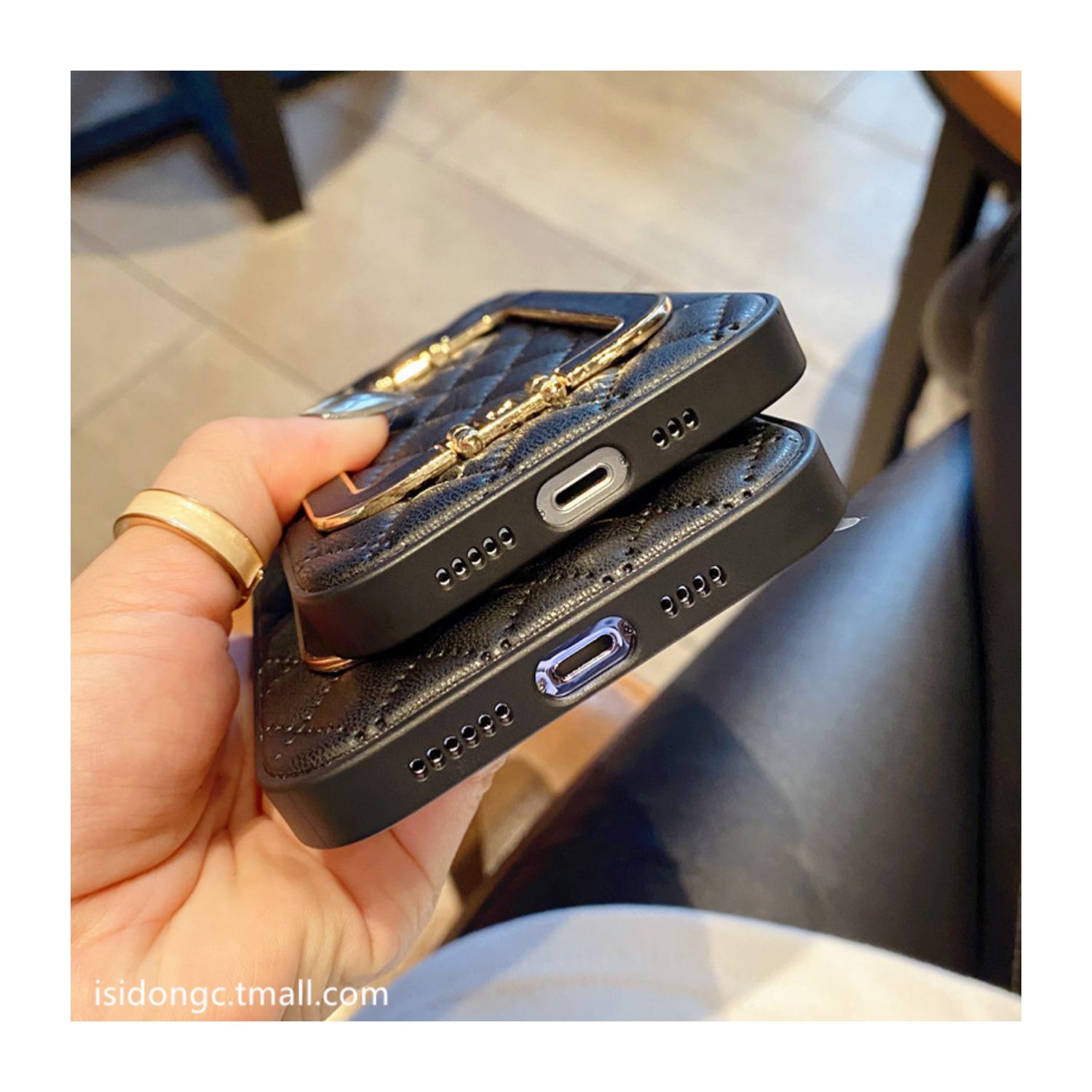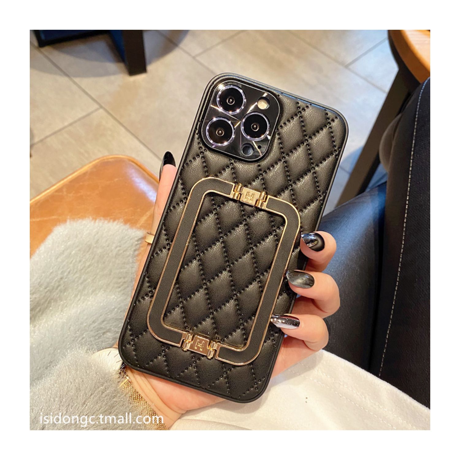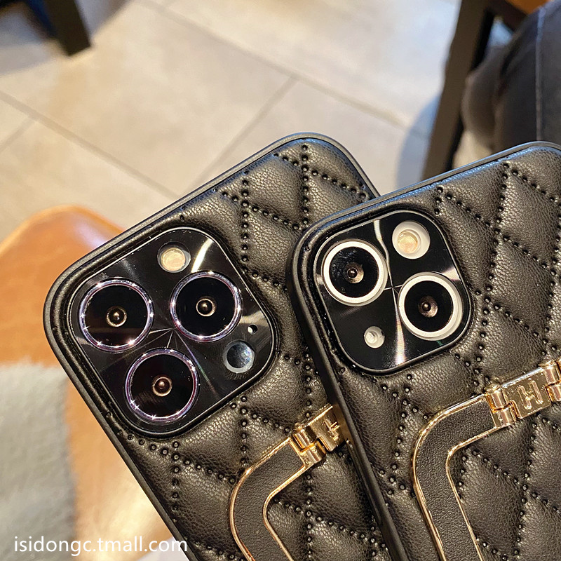 香風菱格皮質方扣適用蘋果14pro手機殼全包iphone15網紅11女神12高級感13max鏡頭防摔保護套x新款7/8p黑色xr