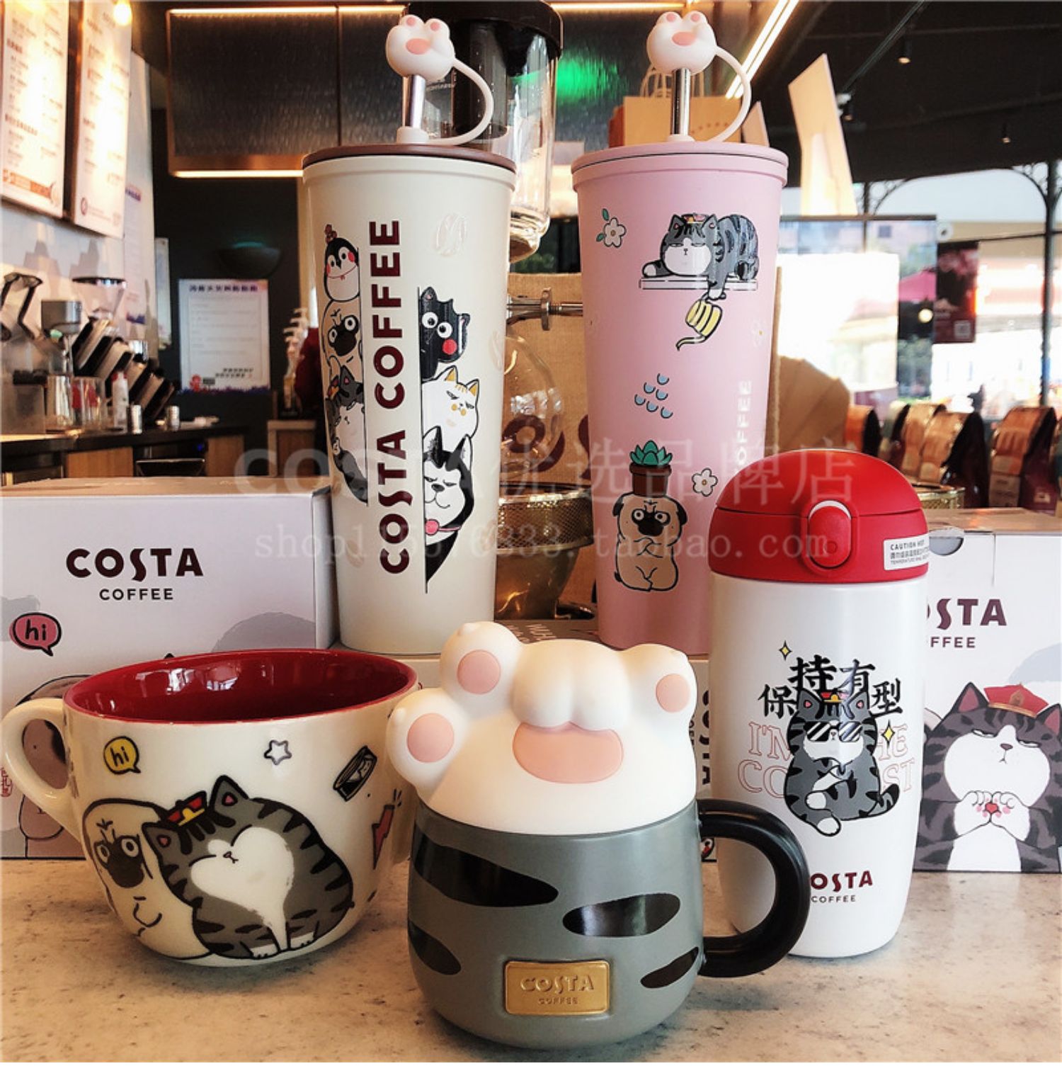 costa吾皇萬睡聯名杯網紅貓爪杯執子之爪陶瓷馬克杯不銹鋼吸管杯