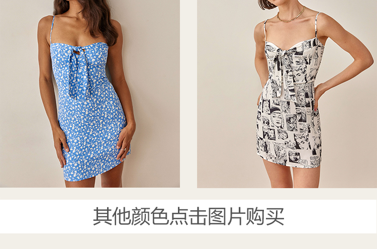 reformation連衣裙法式復古印花收腰包臀吊帶2022年年新款短裙女