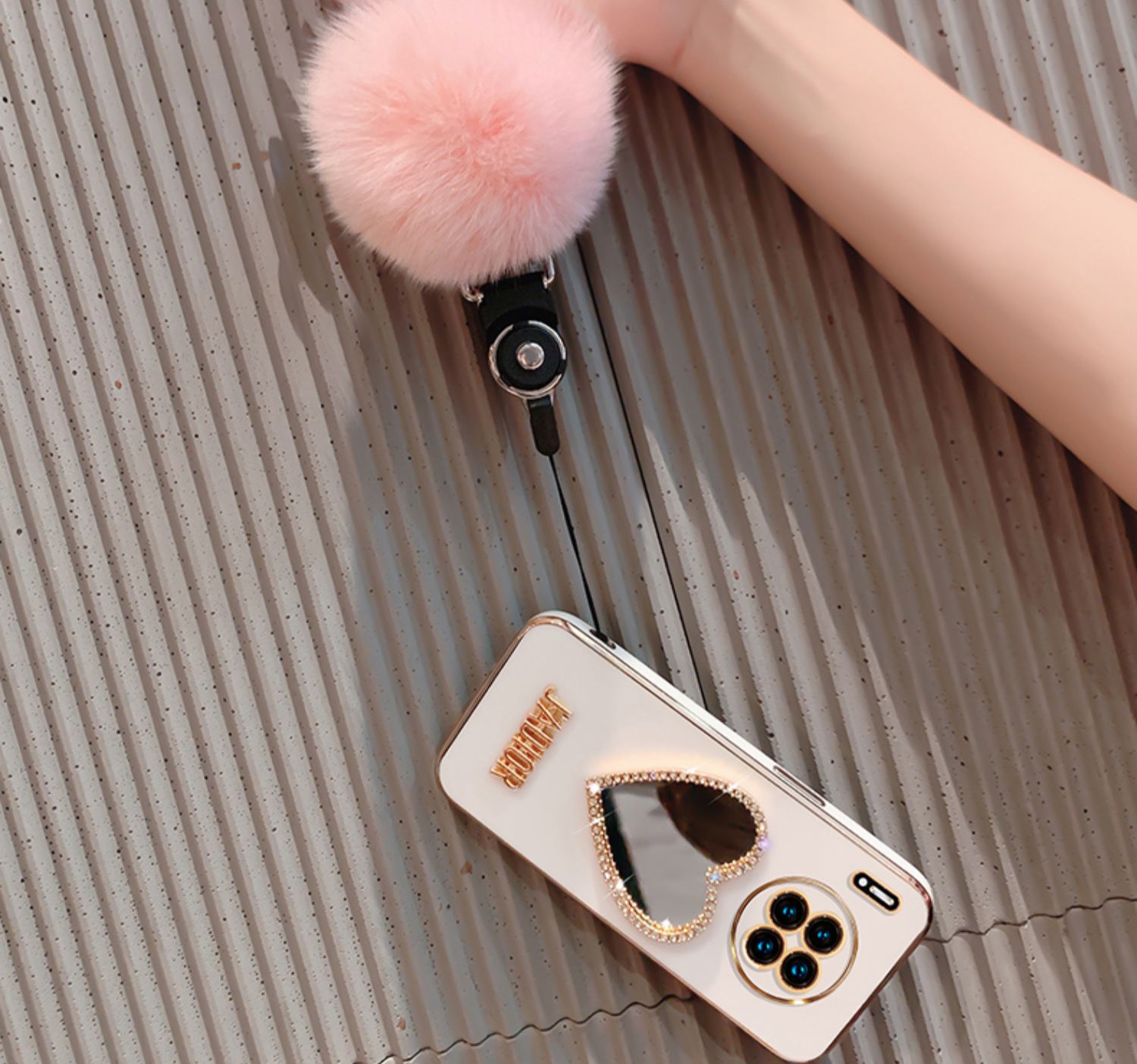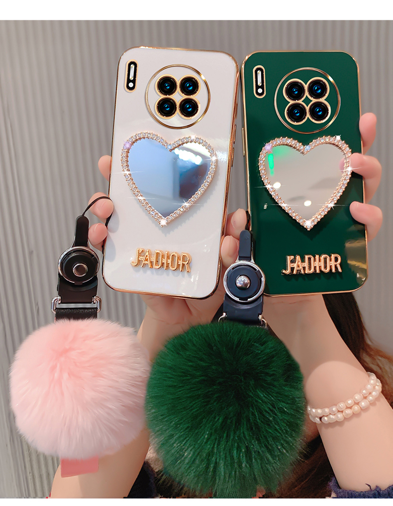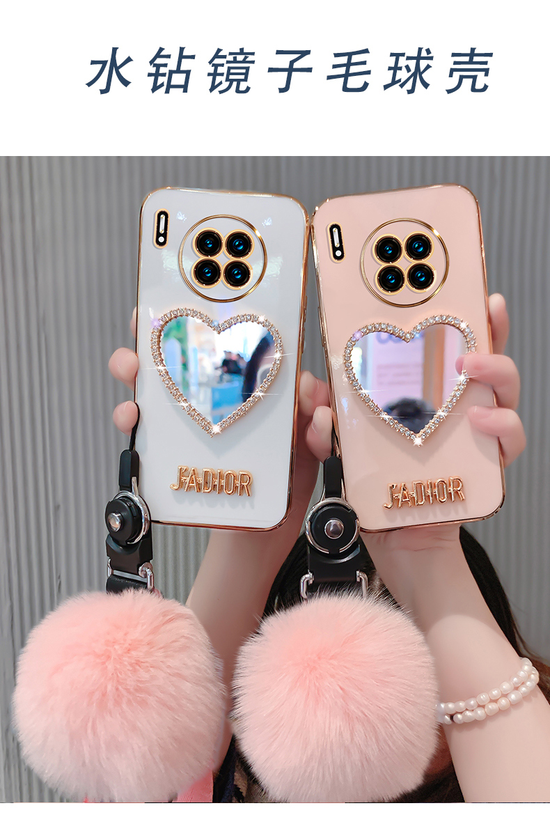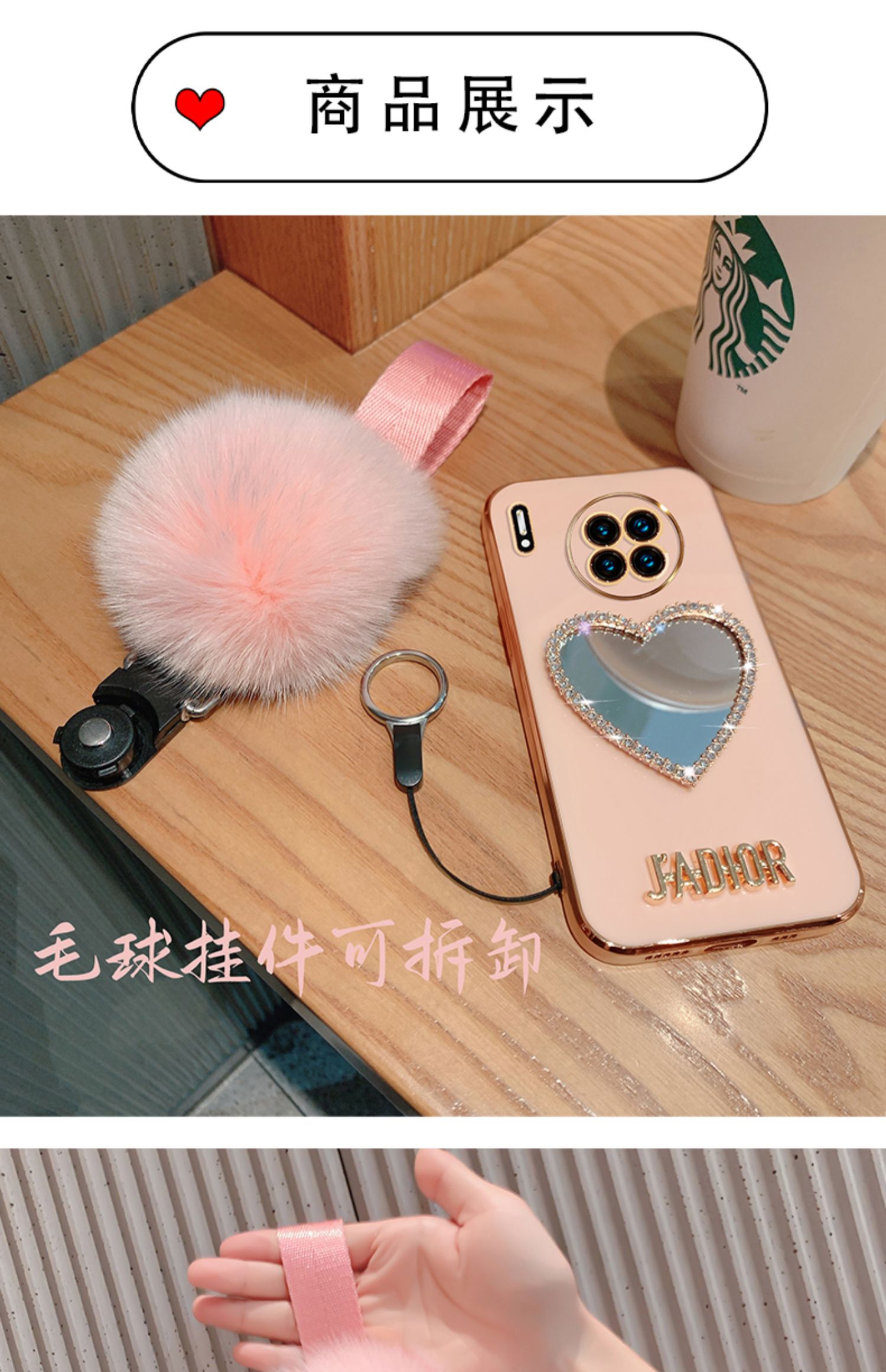 華為mate30手機殼新款mate30pro女款全包防摔硅膠mate30epro創意鏡子帶掛繩毛球網紅潮牌高級感保護軟殼