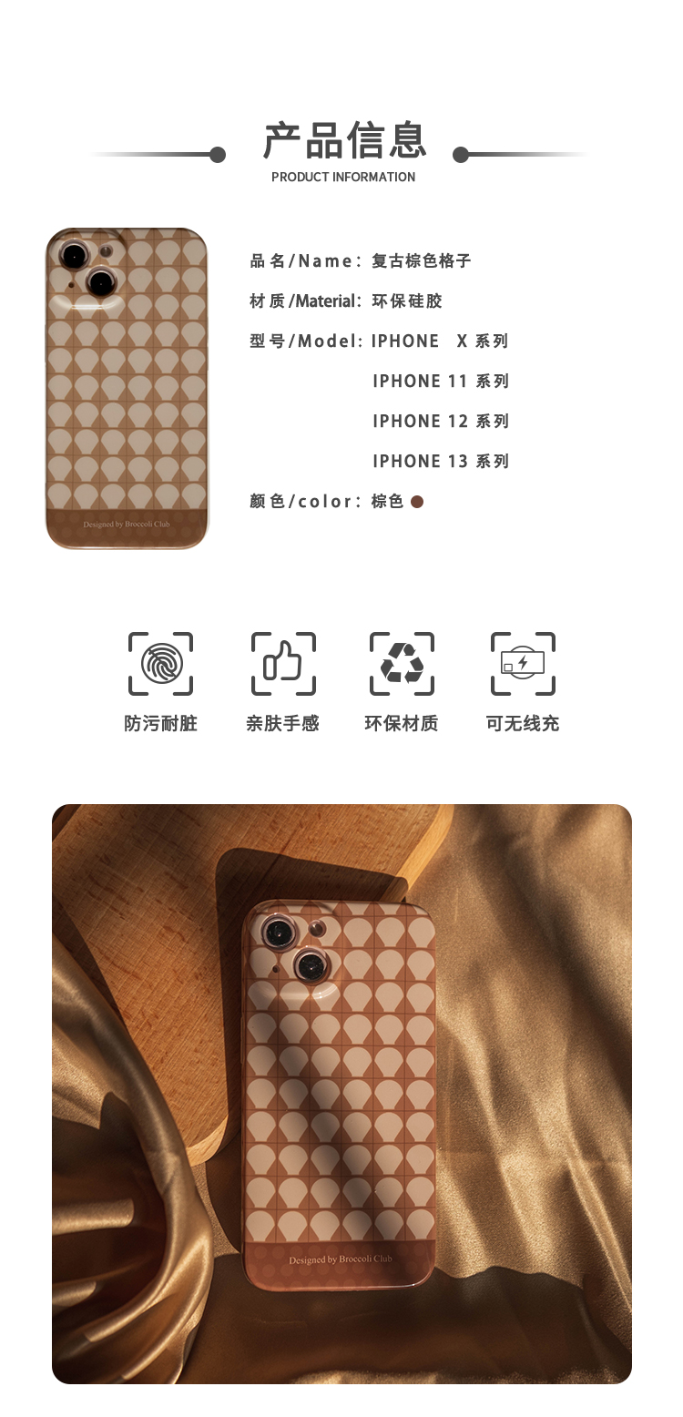復古棕色格子手機殼適用于iPhone13蘋果12pro/XS Max情侶款