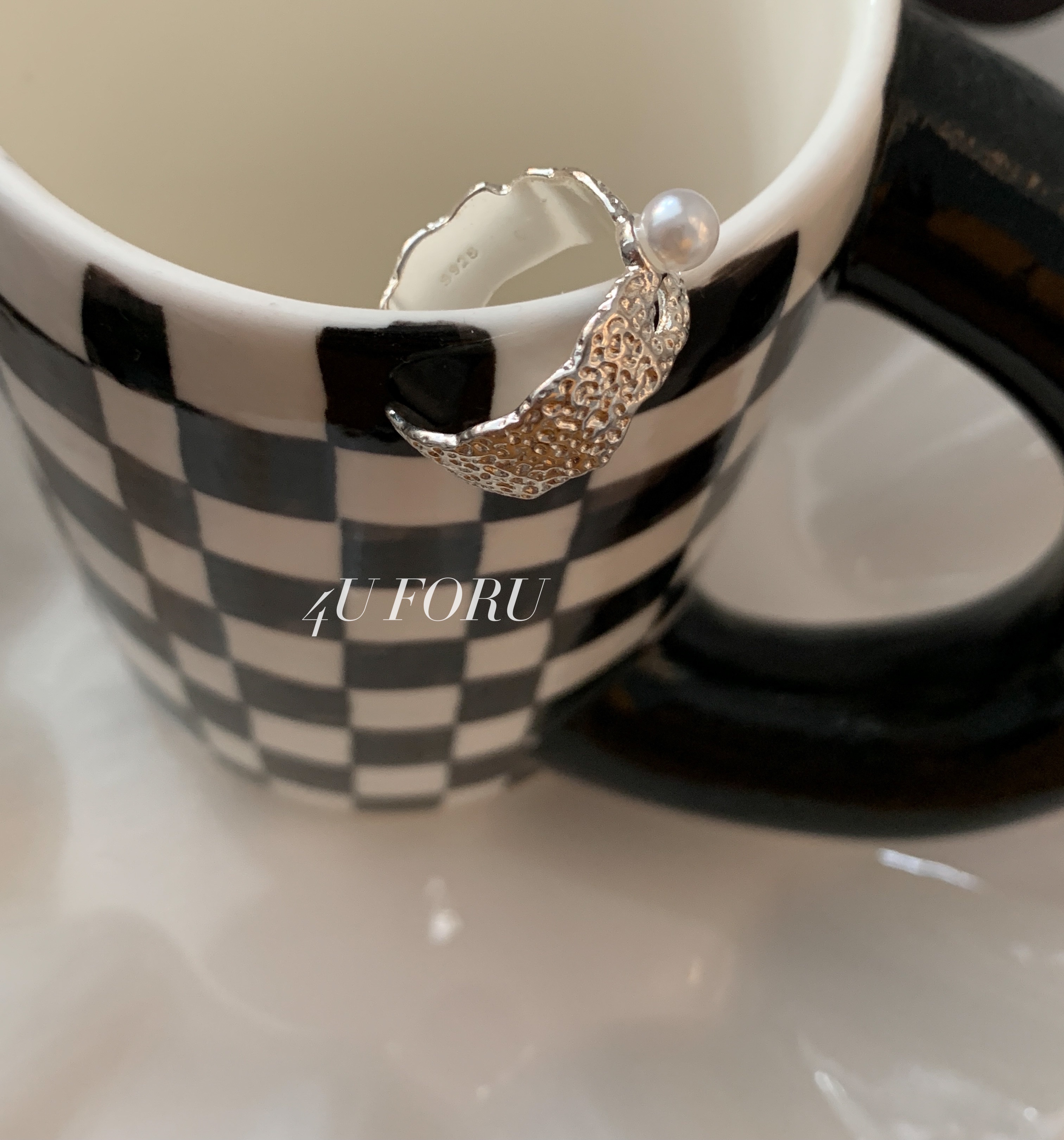 歐美時尚珍珠簡約設計師款戒指 925銀戒指