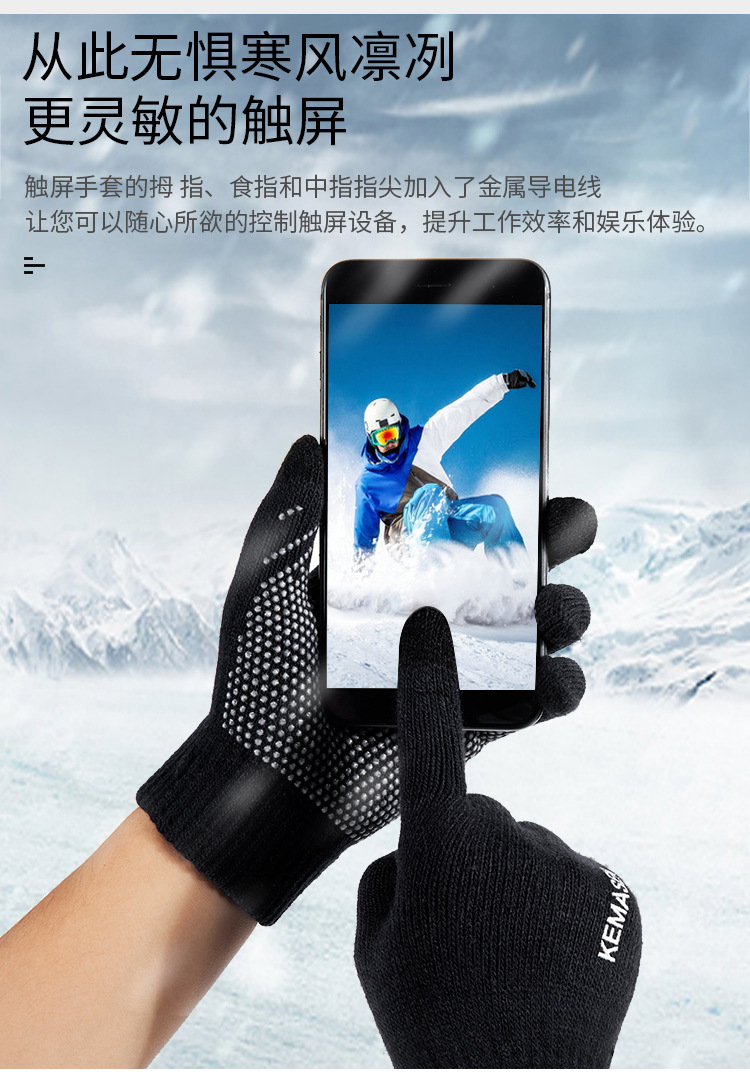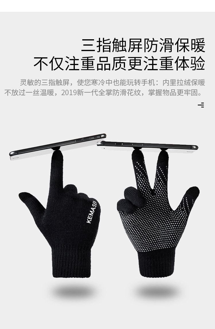 男士觸屏個性帥氣彈力毛線保暖手套