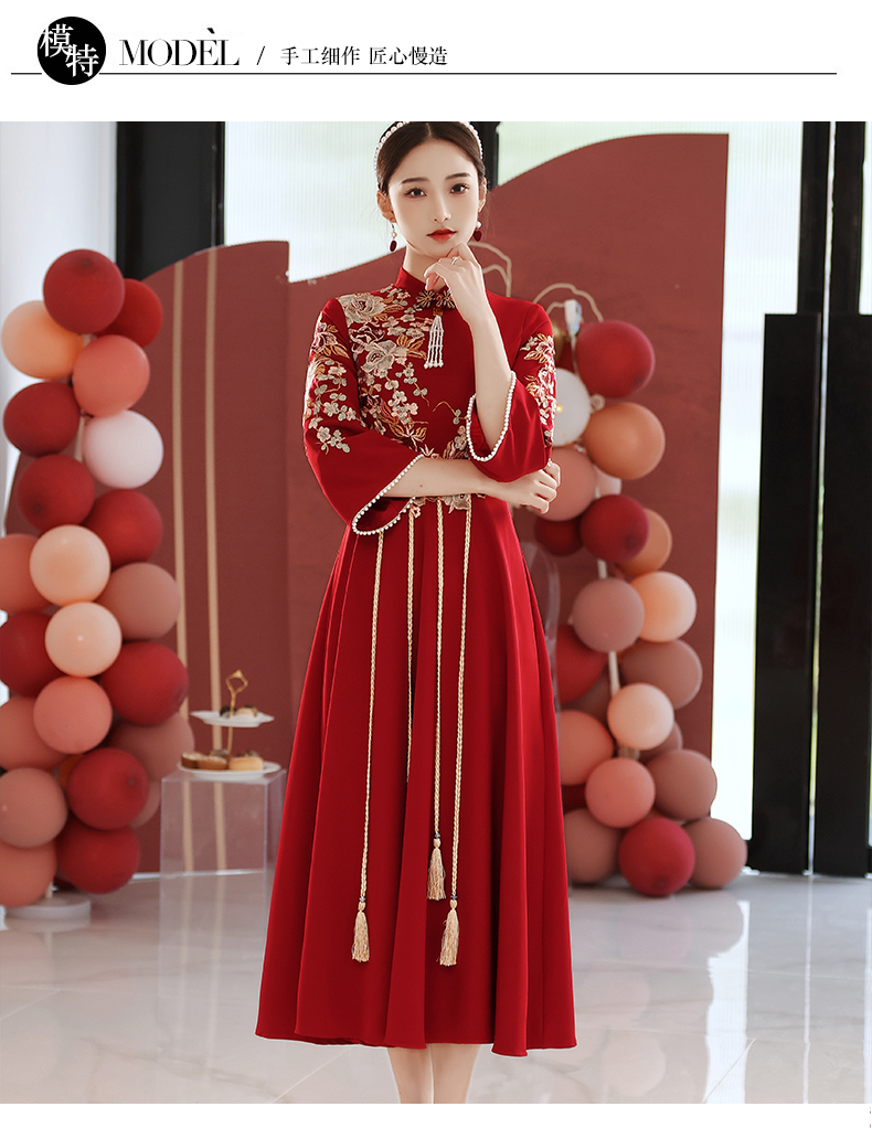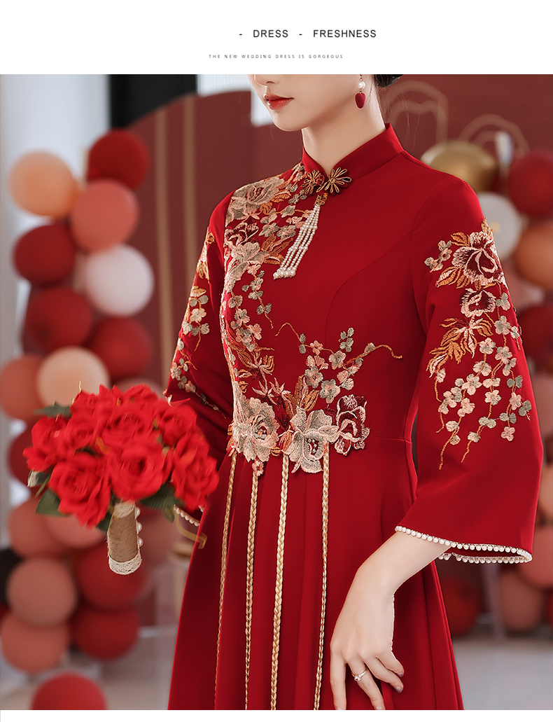 中式敬酒服2023新款新娘結婚旗袍大碼顯瘦酒紅色回門禮服秋冬長款