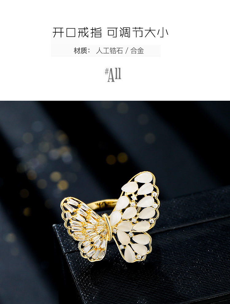 夸張立體貓眼石蝴蝶開口裝飾戒指女小眾設計可調節的超仙食指指環
