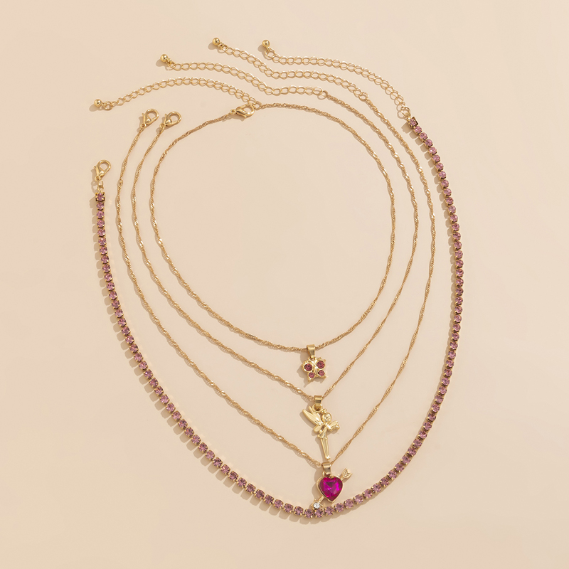 4件套天使吊墜爪鏈項鏈套裝 歐美新款甜美潮酷多層疊戴鎖骨鏈