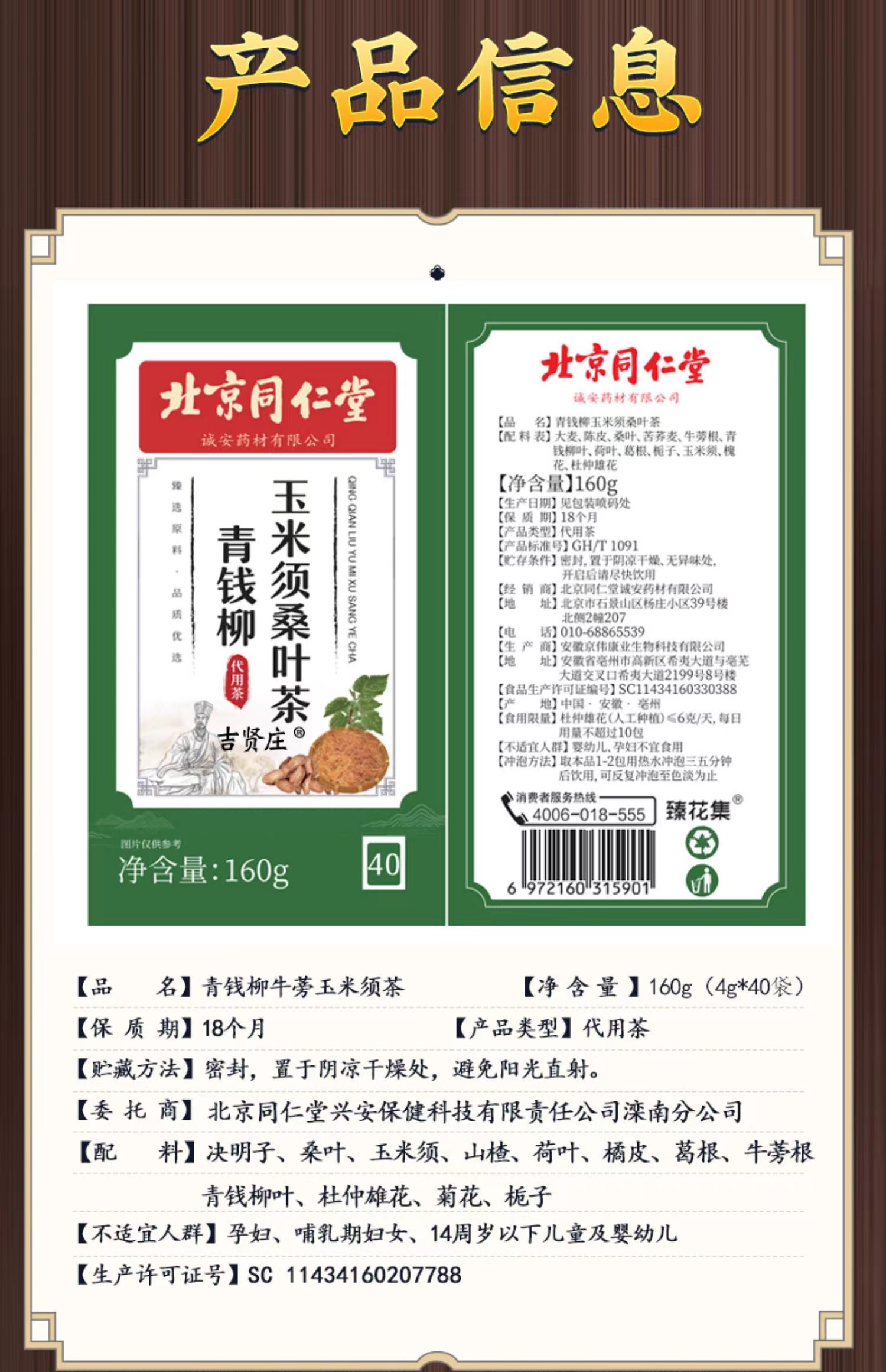 同仁堂玉米須降壓降脂降糖包青錢柳