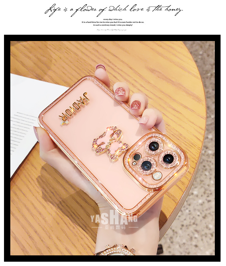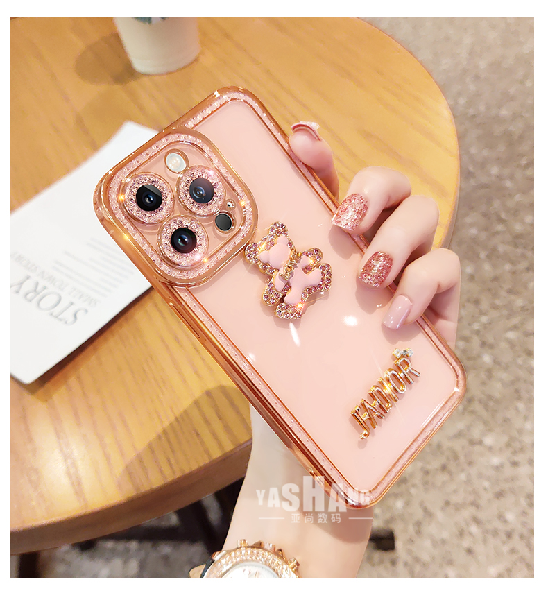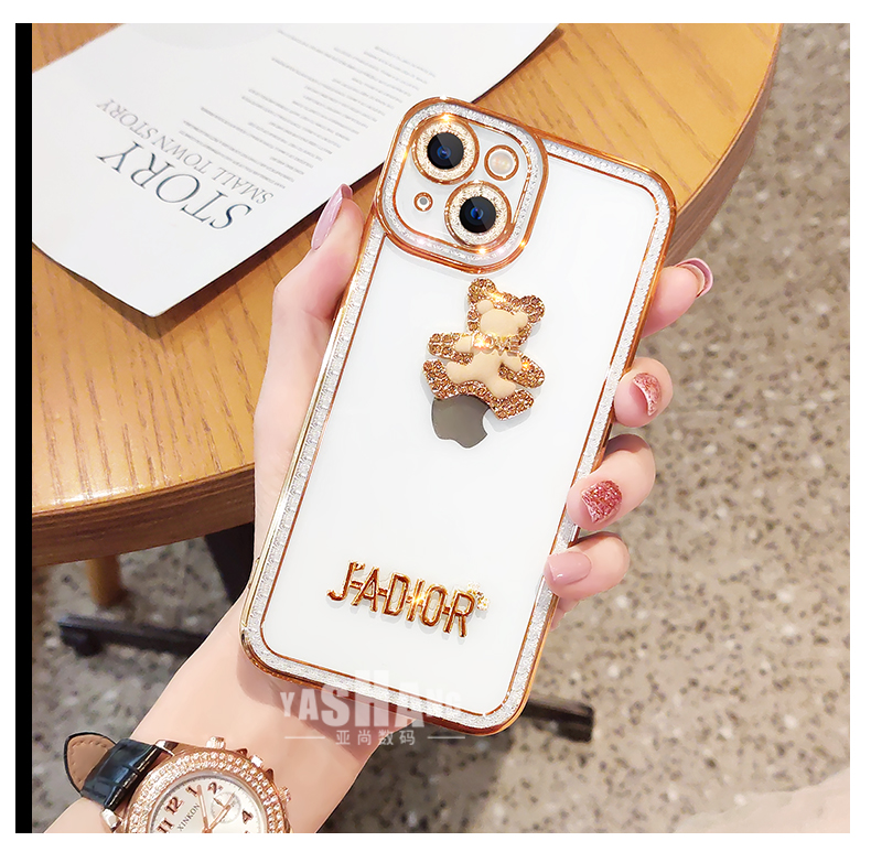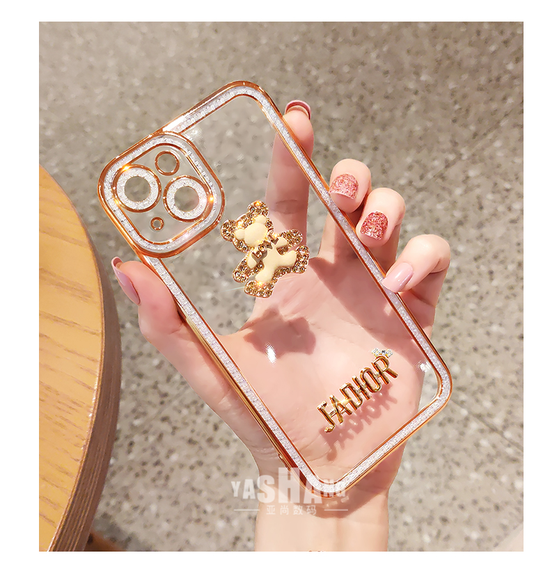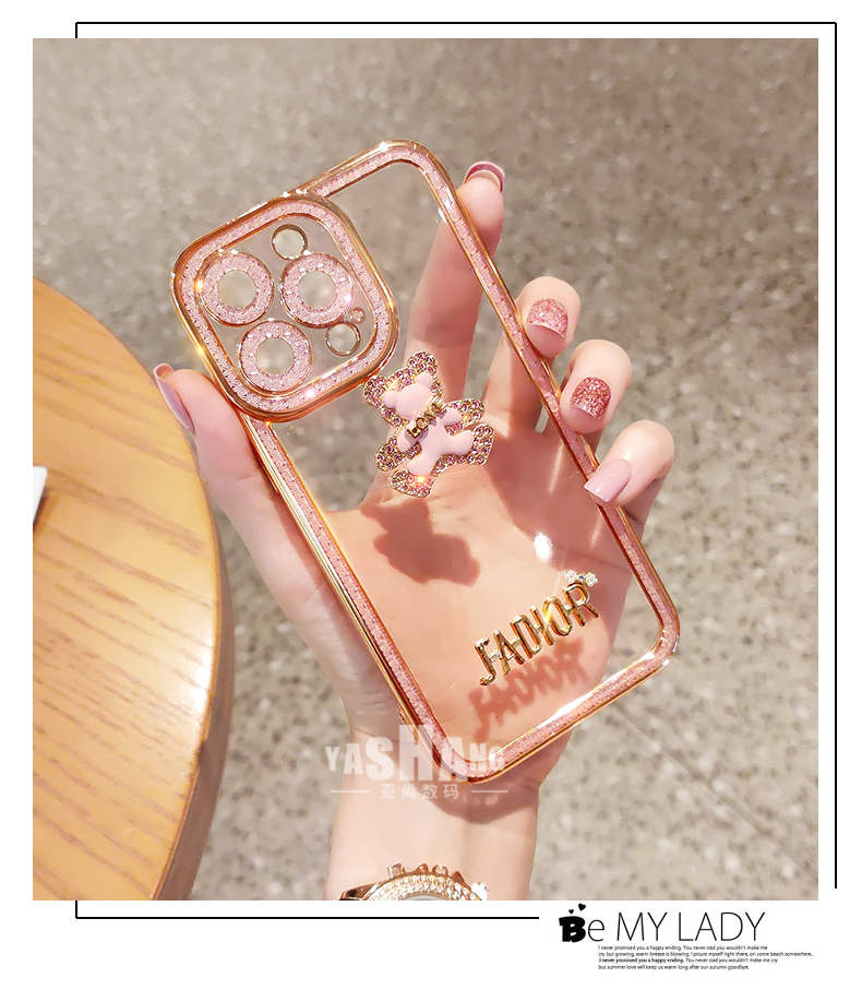 蘋果13手機殼日韓新款iphone12鉆石紋11貓眼攝像頭全包xsmax帶鉆小熊8plus硅膠xr保護套11pro網紅13pro潮女殼