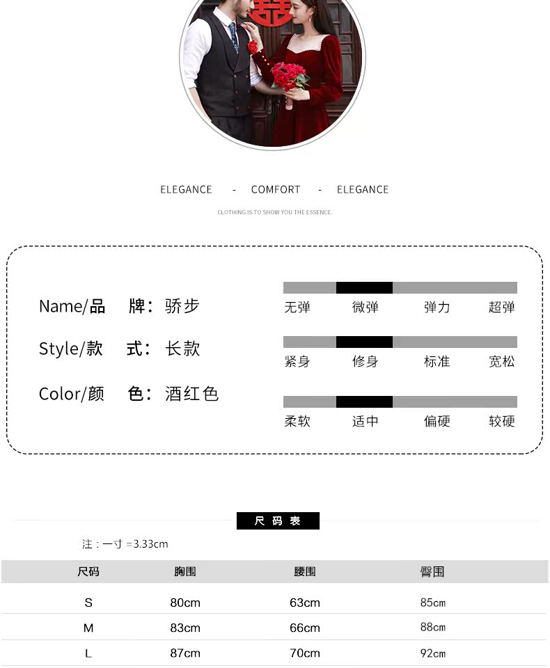 長袖新娘結婚氣質酒紅色秋冬季裙