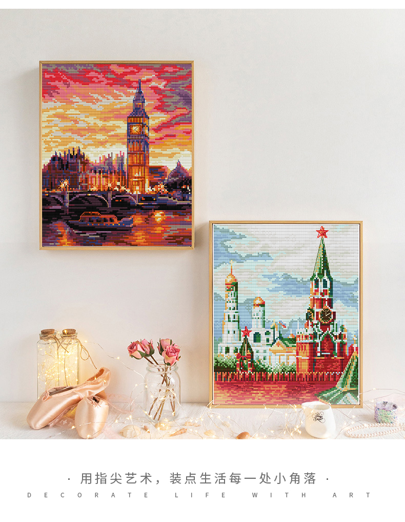 城市地標系列風景十字繡2023年新款線繡客廳玄關多聯手工刺繡掛畫