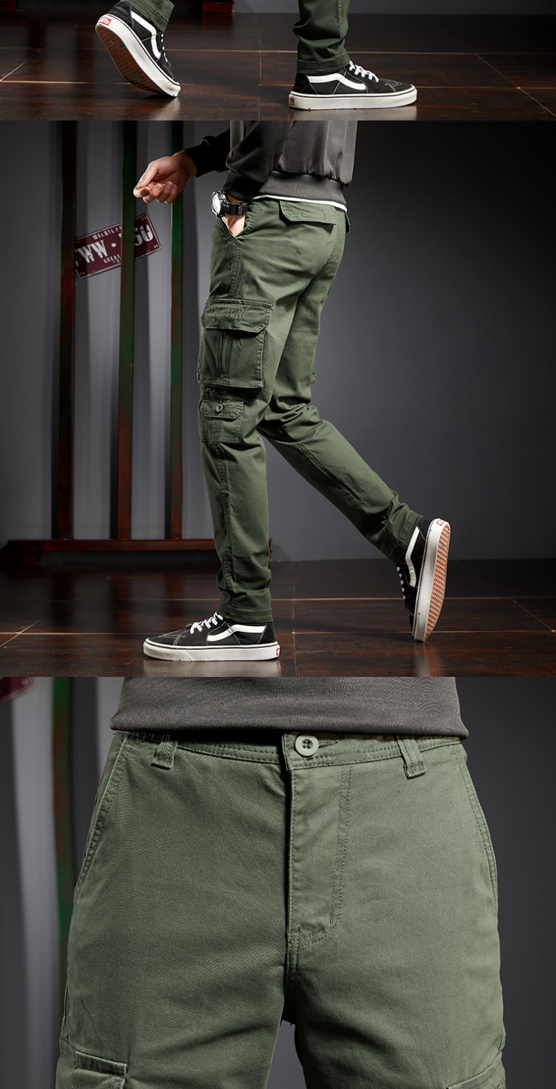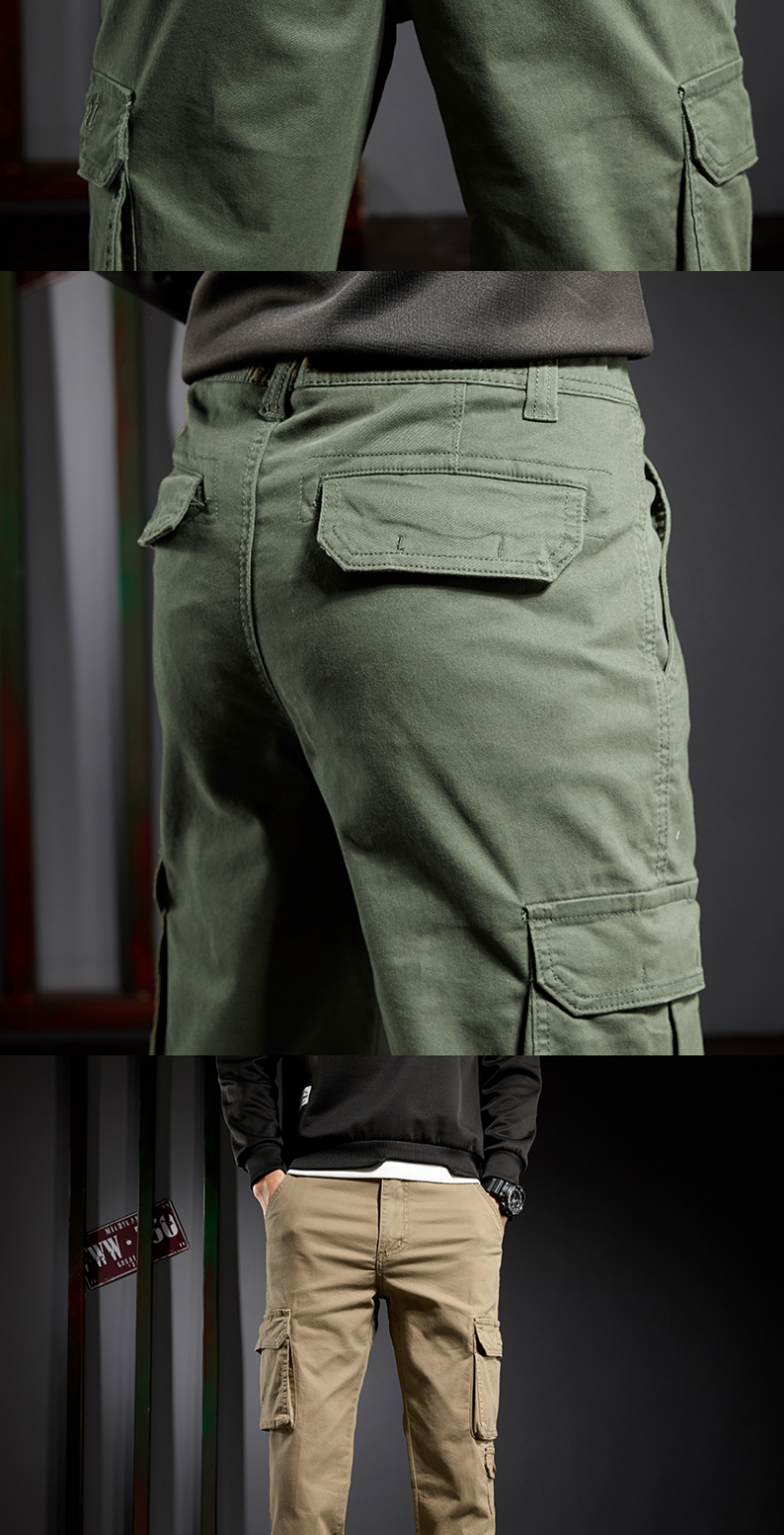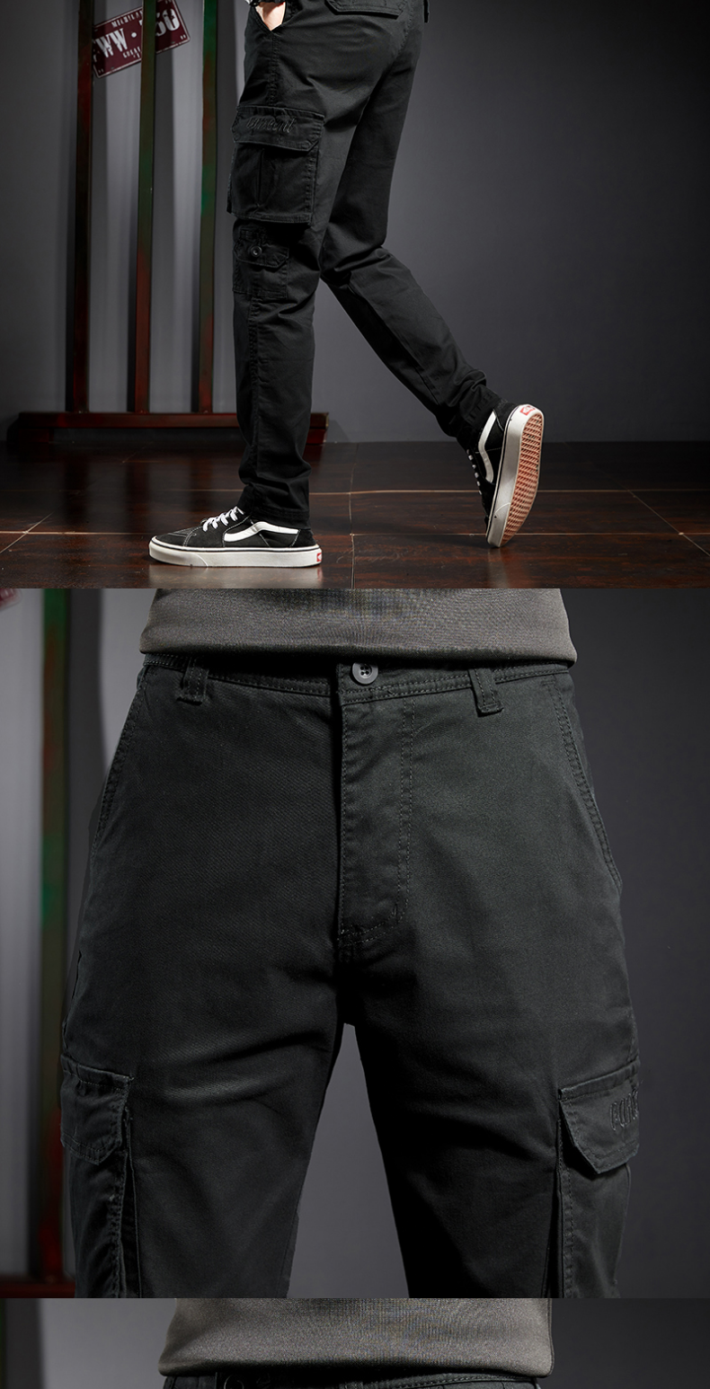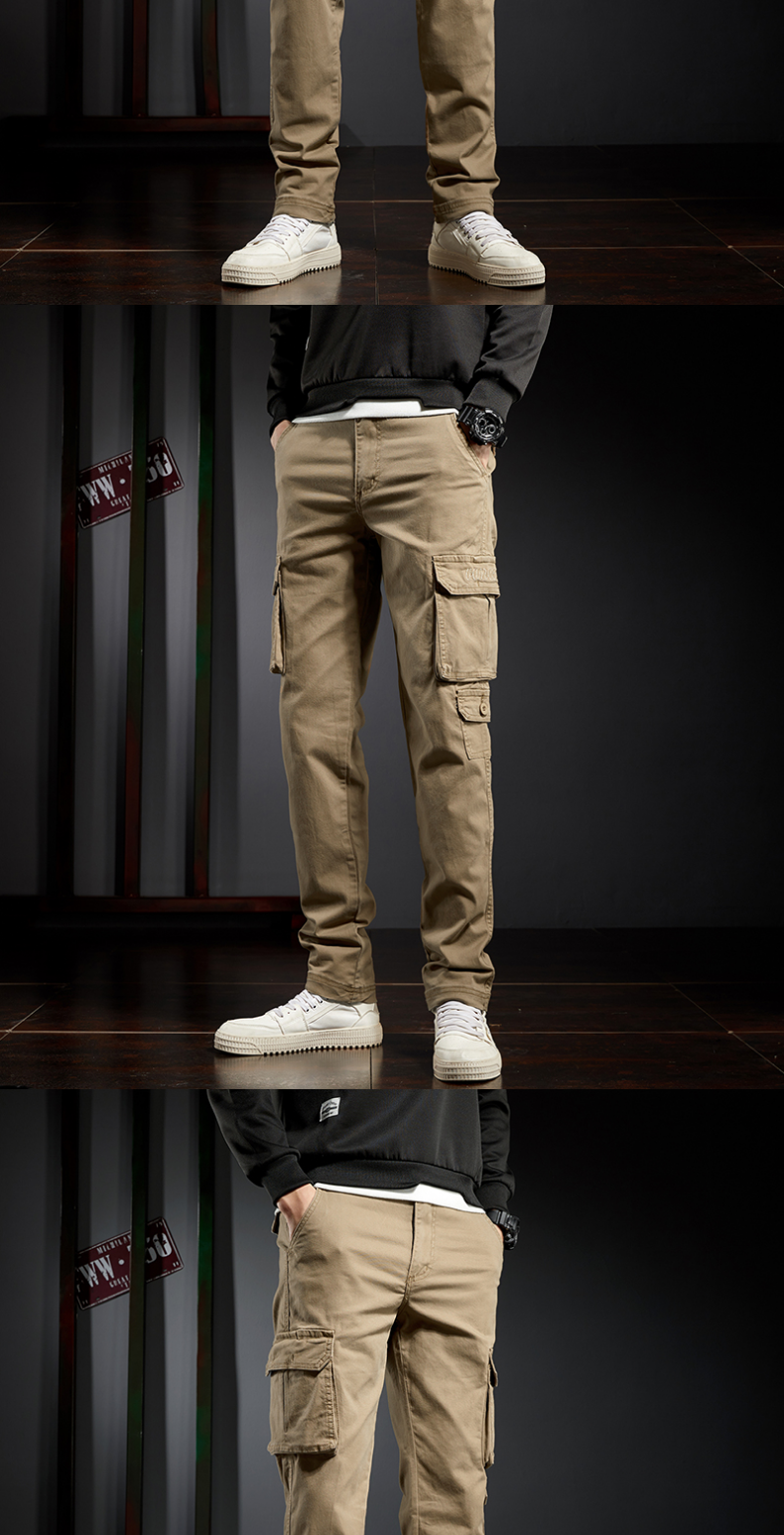 春秋工裝男士直筒修身多口袋牛仔褲