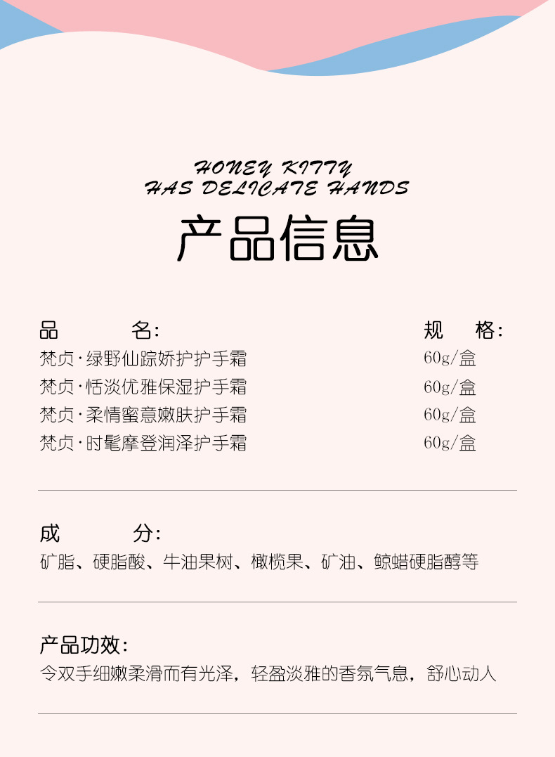 梵貞甜心貓咪補水保濕不油膩護手霜