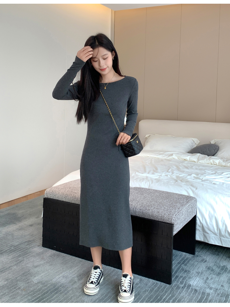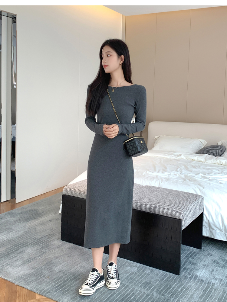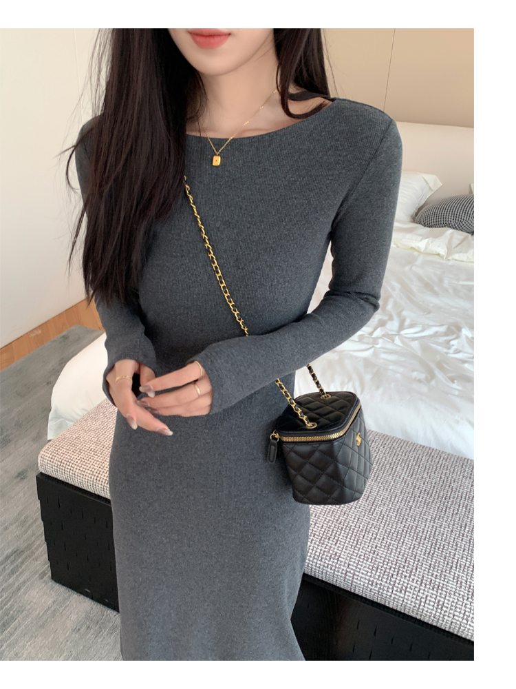法式赫本風長袖黑色打底裙小連衣裙