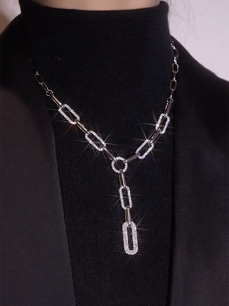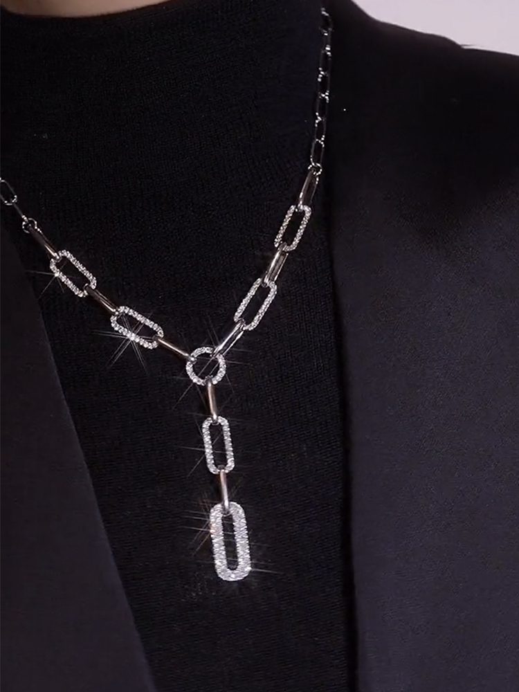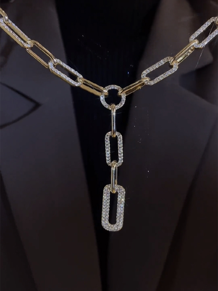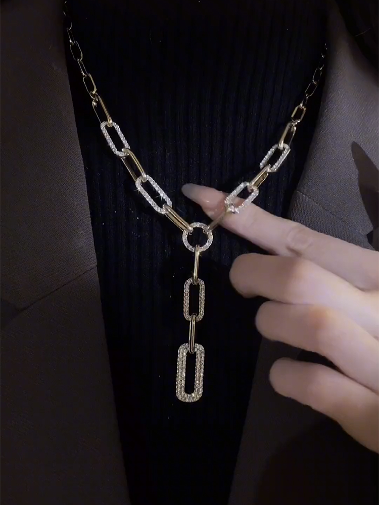 高級感簡約閃鉆鏈條金屬個性毛衣鏈
