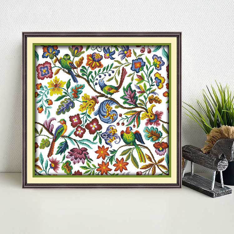 2023新款印花十字繡鳥語花香客廳臥室花卉簡約小件手工線繡自己繡