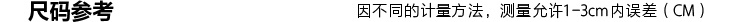 以上數據根據平均身材得出,適用于大部分人群,僅供參考,買家可根據自己的身高與體重情況參考選擇尺碼,如有疑問,請咨詢客服。