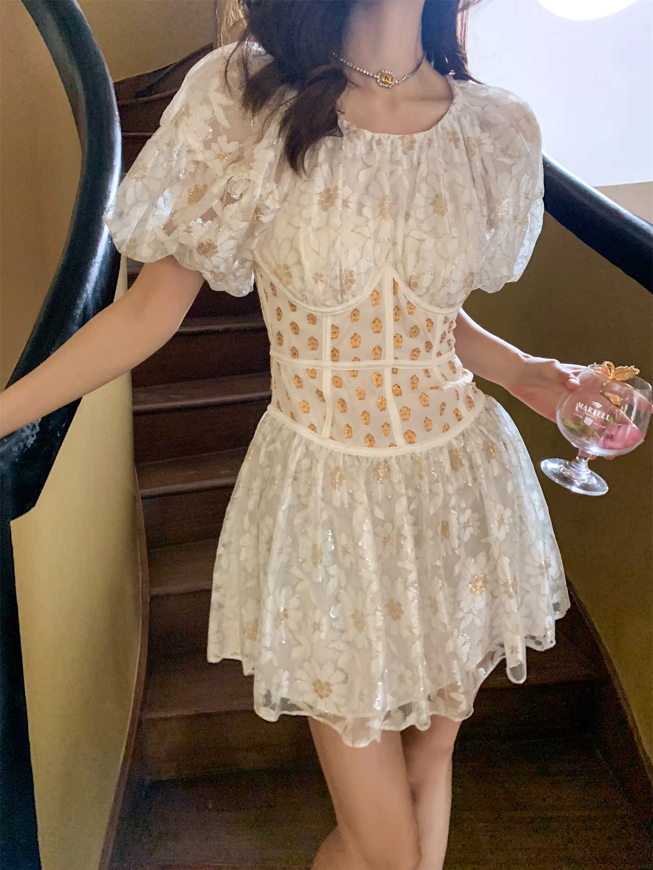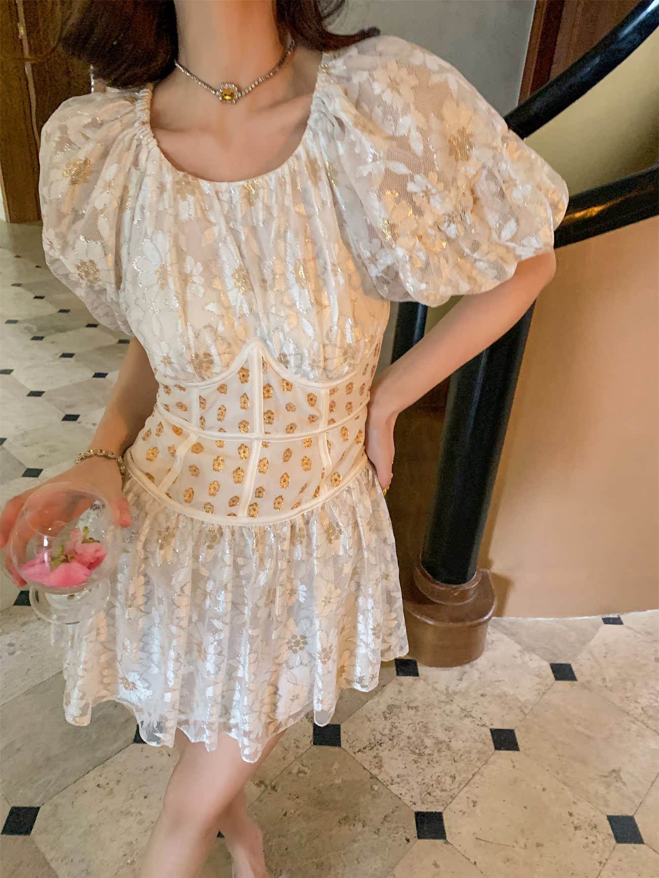 現貨木蘭For Love and Lemons雛菊蕾絲泡泡袖迷你裙連衣裙