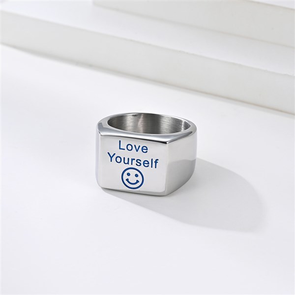 Love Yourself 愛自己藍夜光笑臉鈦鋼戒指 簡約氣質單身男士指環