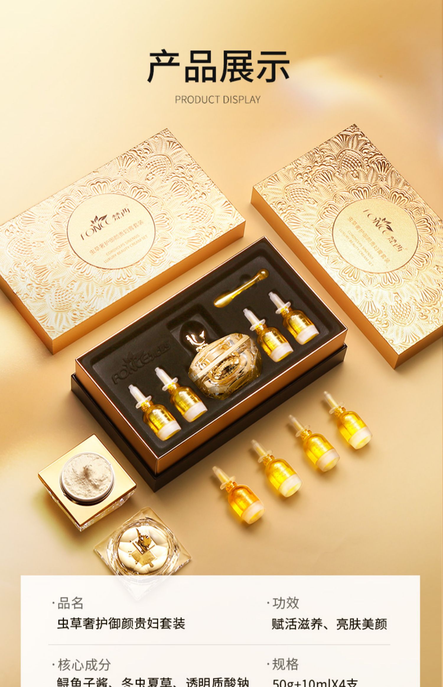梵西蟲草奢護御顏貴婦膏補水保濕提亮膚色面霜精華液面部套裝正品