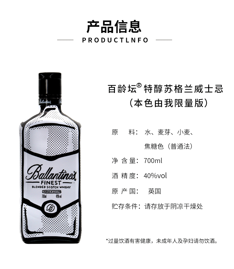 Ballantine'百齡壇特醇本色由我限量蘇格蘭威士忌英國洋酒700ml*6
