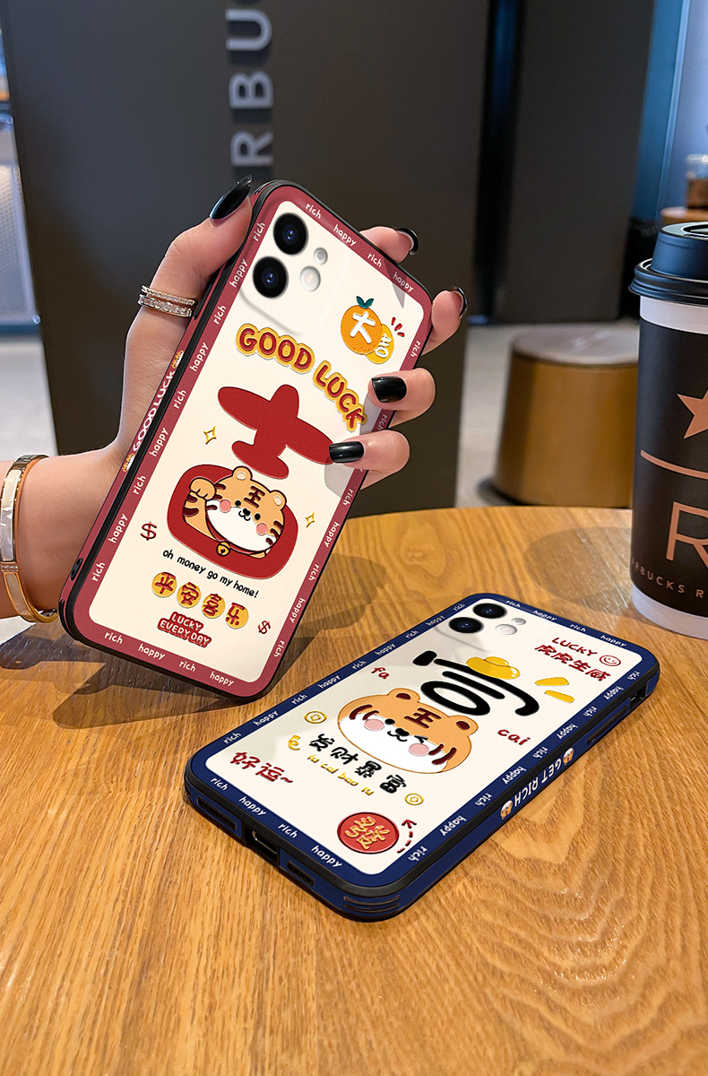 發財老虎蘋果12手機殼新款iPhone11保護套12pro側邊框新年12promax仿皮超薄女款鏡頭全包11防摔可愛個性創意
