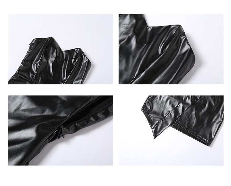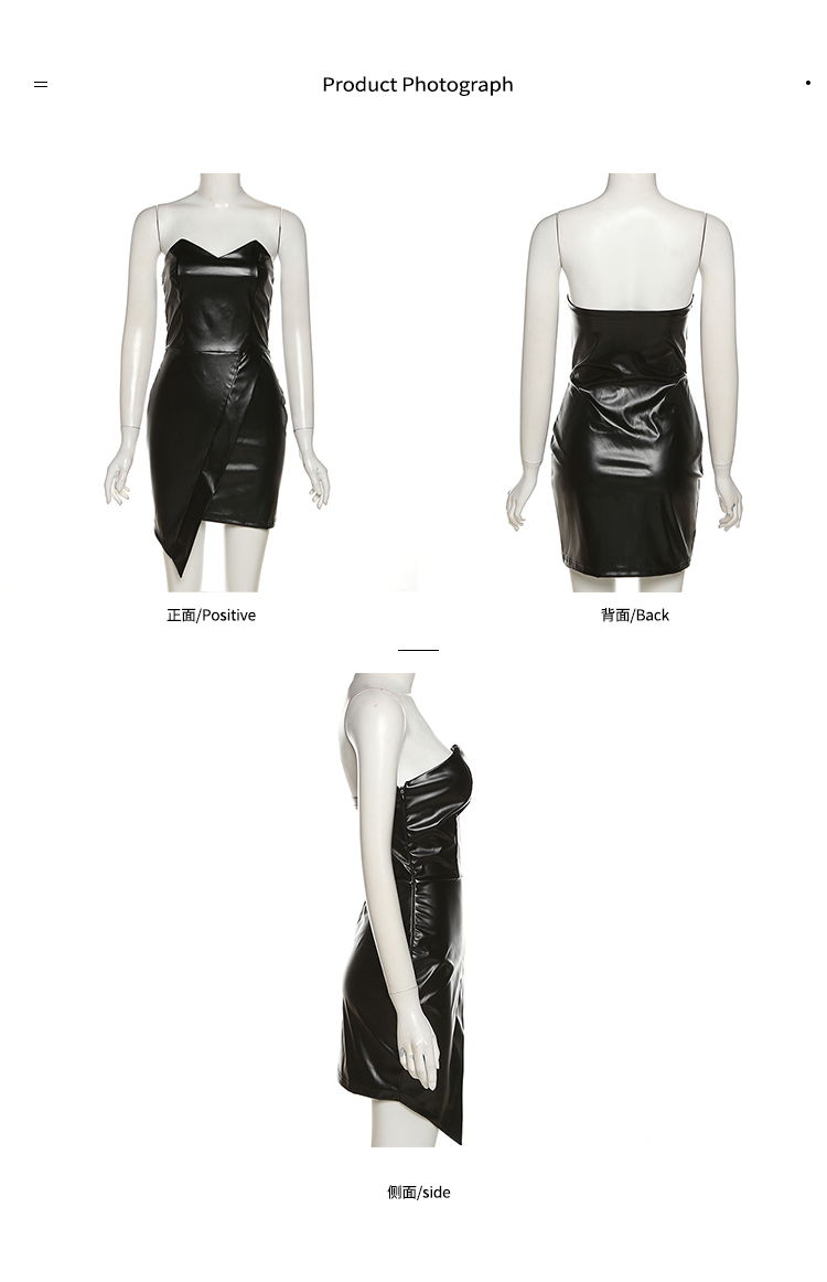 SylCue性感御姐風黑色抹胸連衣裙女PU皮不規則顯瘦修身包臀短裙子