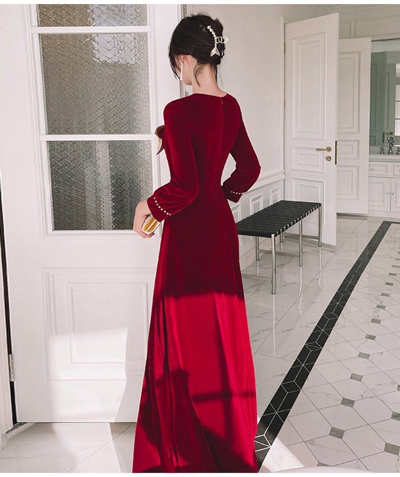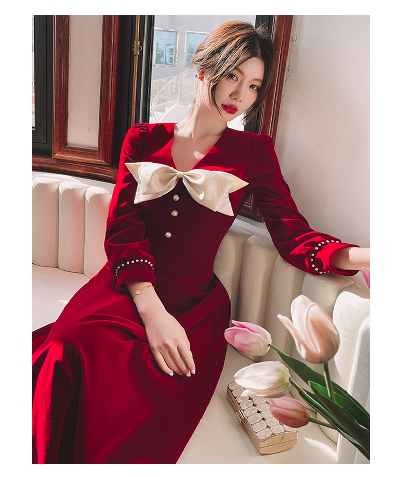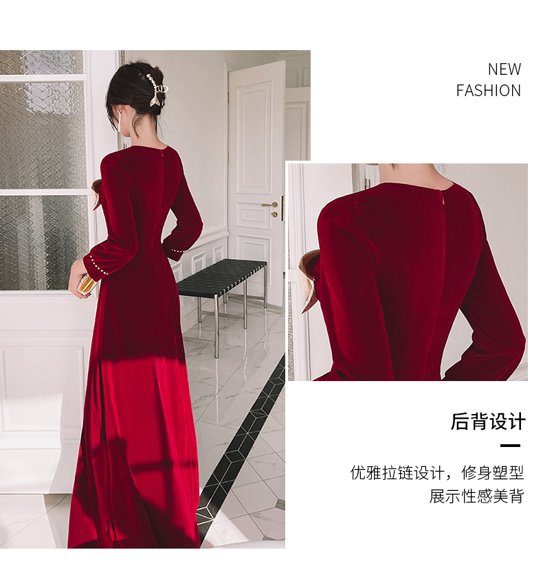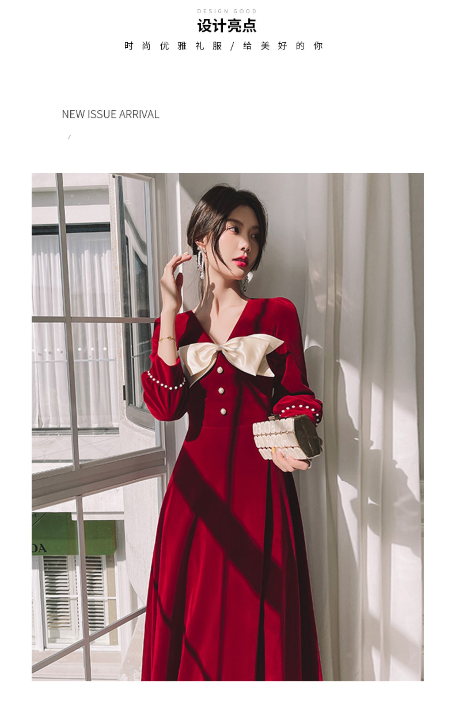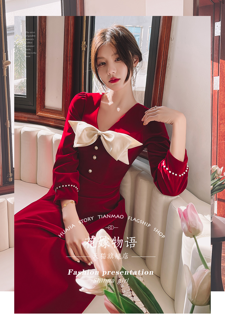 敬酒服新娘結婚晚禮服紅色2023新款訂婚連衣裙訂婚年會宴會冬季
