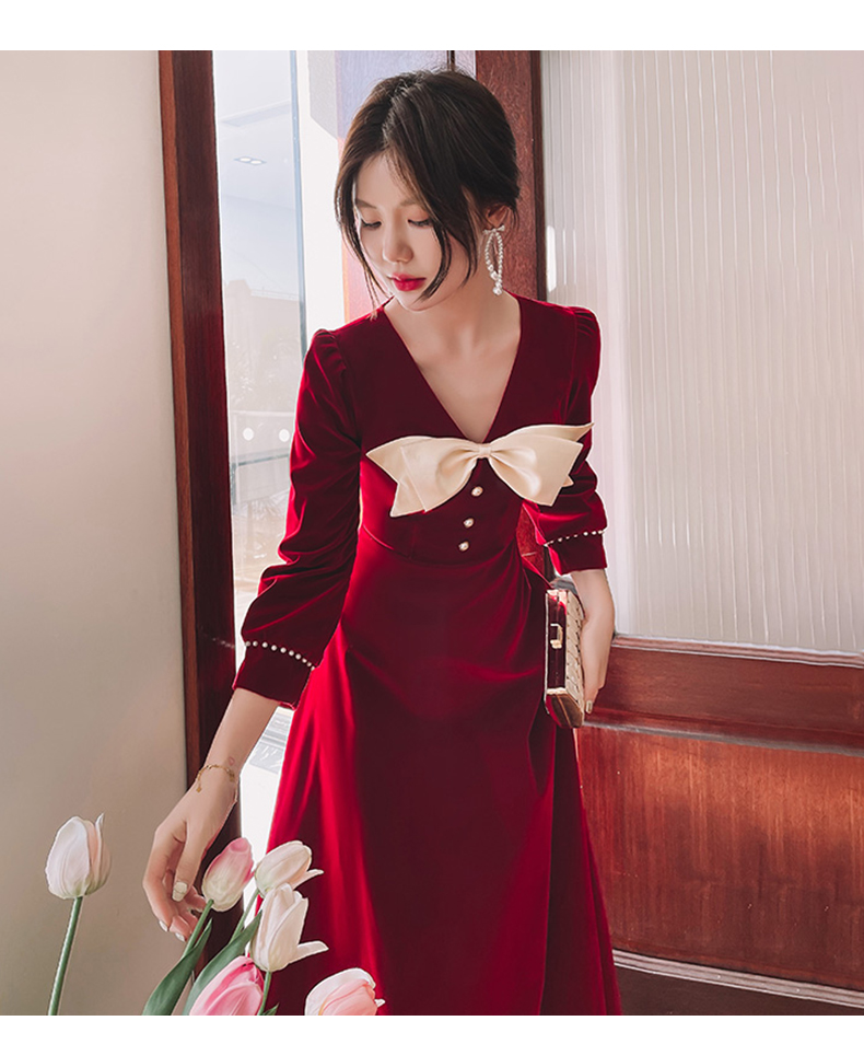 酒紅色2023新款訂婚連衣裙感敬酒服