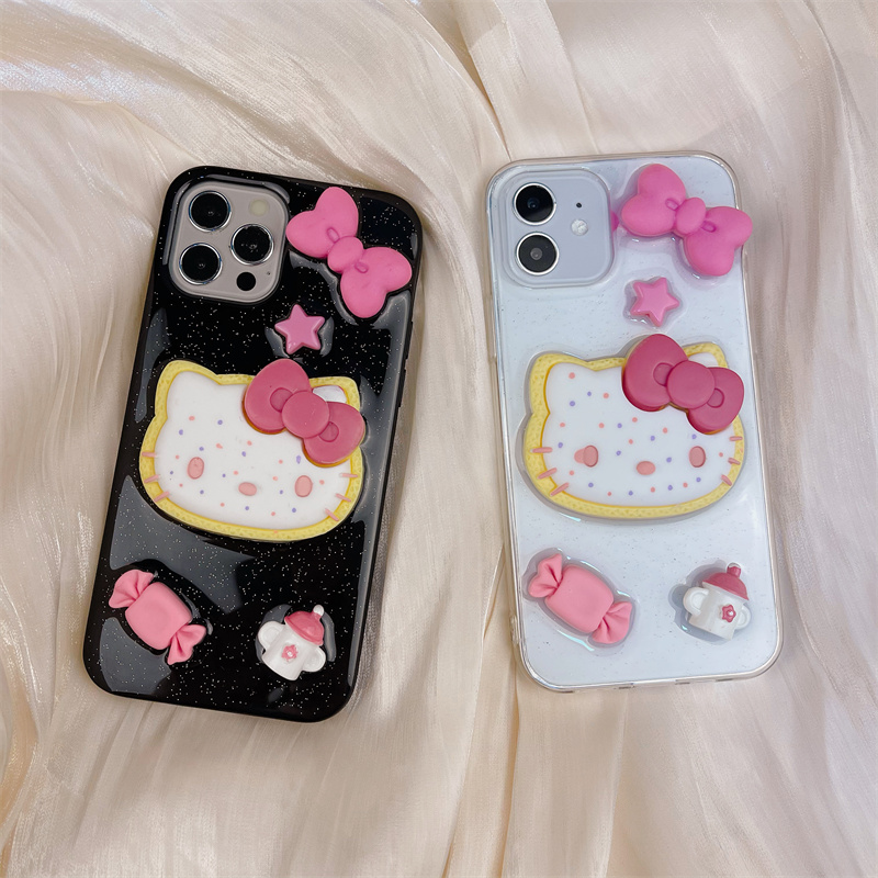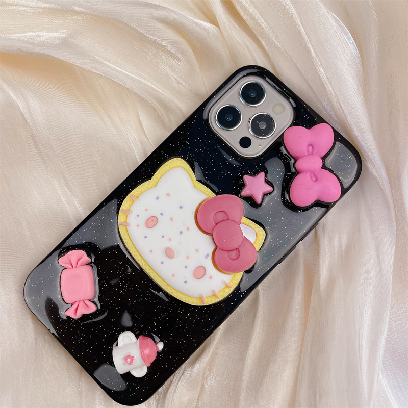 立體卡通可愛HelloKitty滴膠適用蘋果14ProMax手機殼創意iphone13新款14pro小眾11防摔12女15pro透明硅膠全包