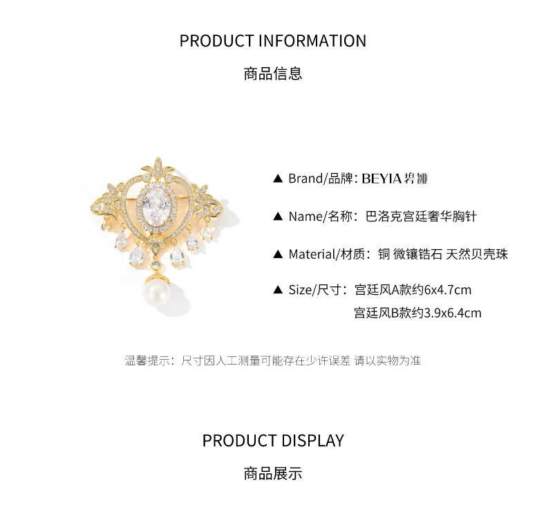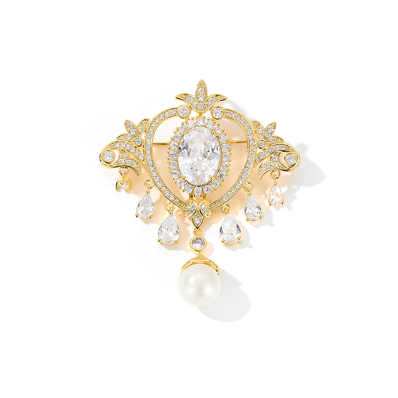 新潮巴洛克宮廷風胸針奢華珍珠氣質高檔別針大衣水晶胸花防走光女