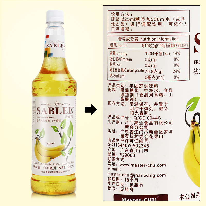 沙布列香蕉風味糖漿濃縮果露900ml奶茶店飲品雞尾酒原料配料