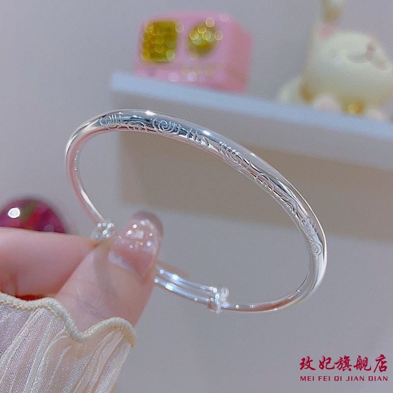 玫妃足銀9999四葉草平安喜樂實心純銀手鐲時尚年輕款送女友閨蜜