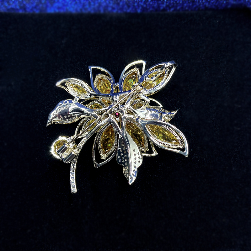 鑲鉆馬蹄蓮復古祖母綠氣質優雅胸針