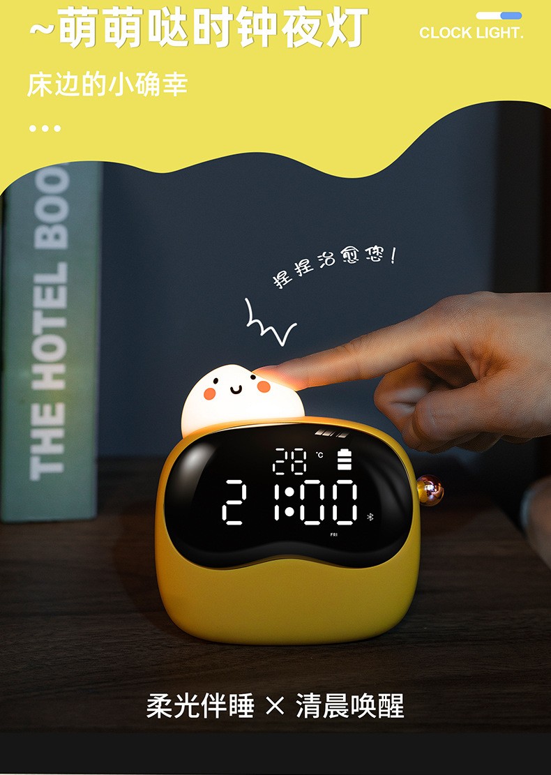 噠噠蛋電子鬧鐘學生用兒童鬧鈴靜音數字桌面可愛鐘表床頭時鐘夜燈