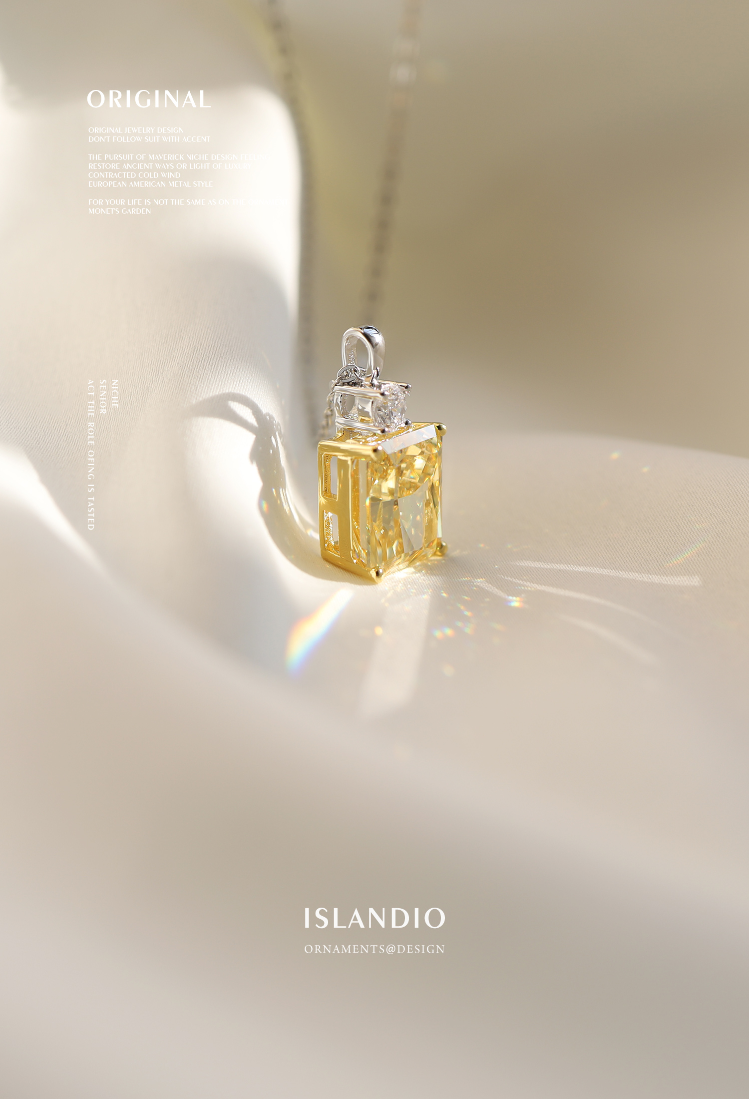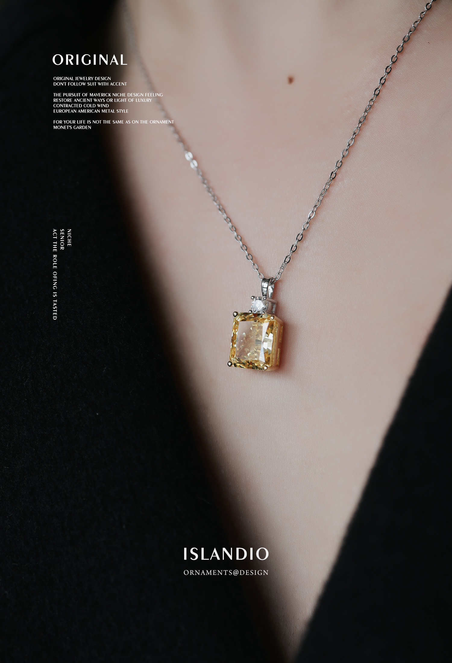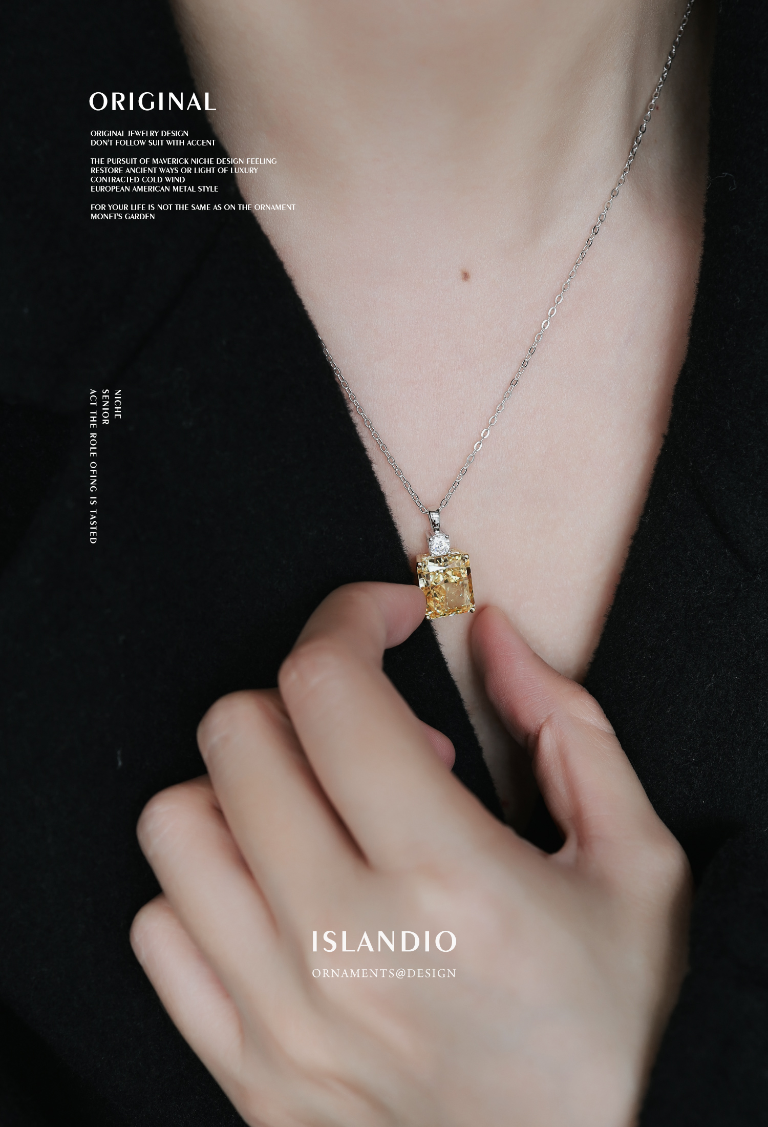ISLANDIO冰花黃鉆寶石項鏈女輕奢小眾秋冬純銀溫柔鎖骨鏈珠寶禮物
