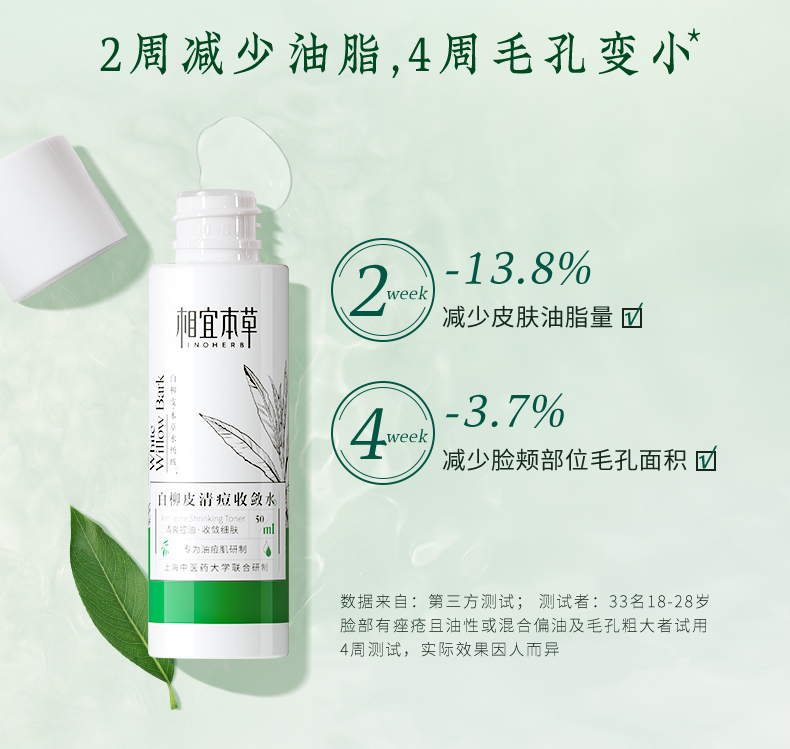 相宜本草白柳皮清痘收斂水控油祛痘爽膚水淡化痘印官方正品保濕水