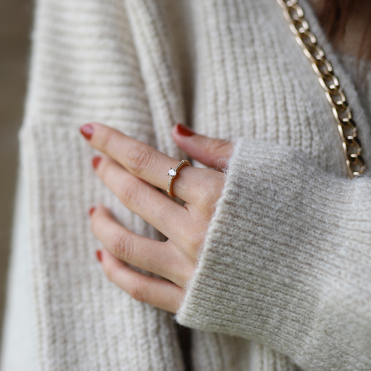 BLOOM綻 珠寶首飾 夾心小方鉆戒指法國進口包金